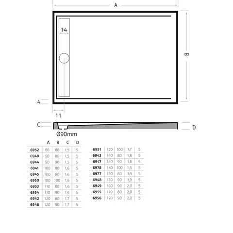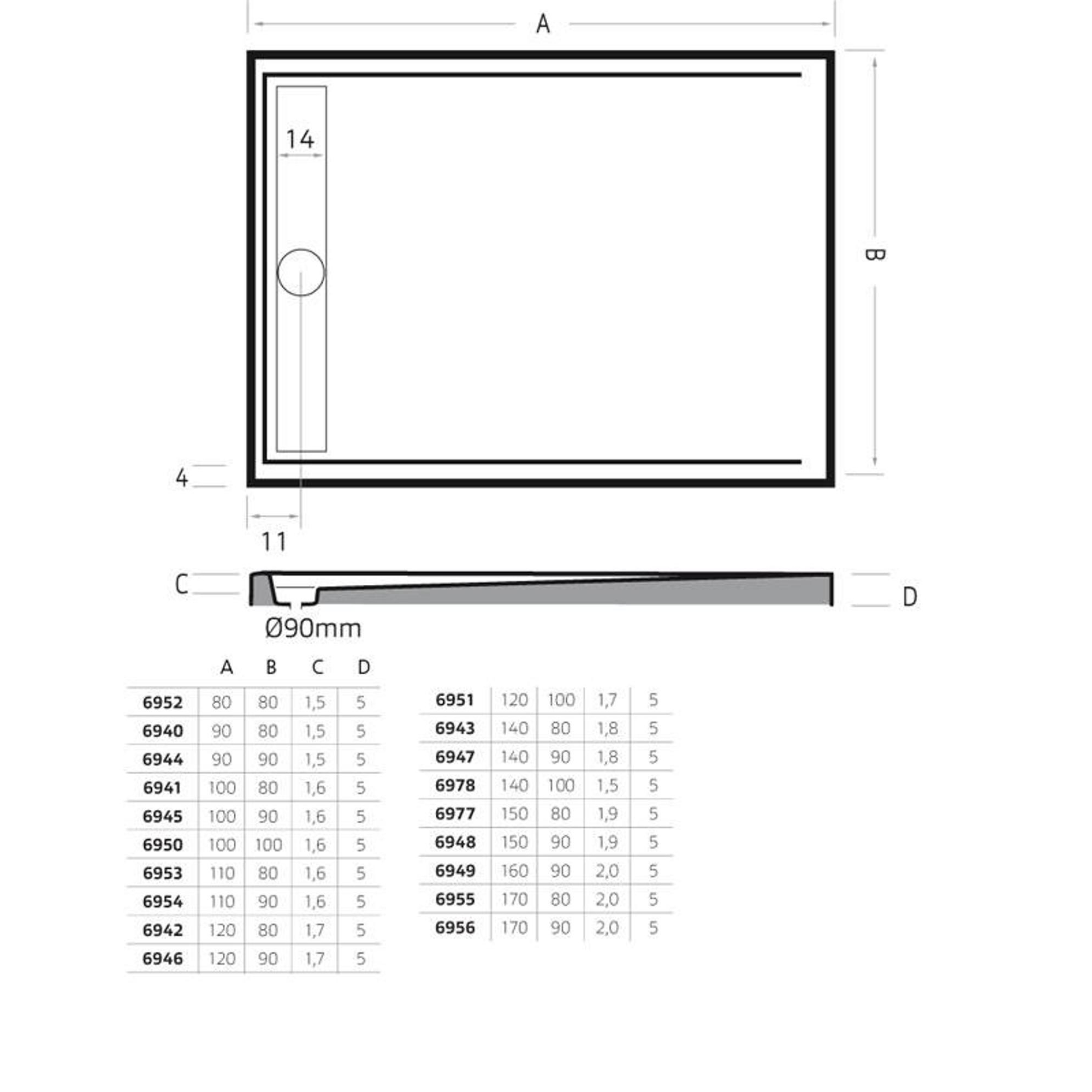 - Grande dimension de 140x90 cm pour une douche confortable et en toute liberté.