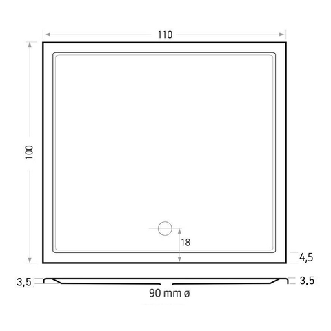 - Receveur de douche spacieux de 110x100 cm pour une douche confortable avec beaucoup de liberté de mouvement.
