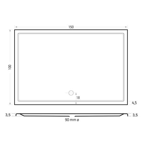 - Receveur de douche spacieux de 150x100 cm pour plus de confort et de liberté de mouvement.