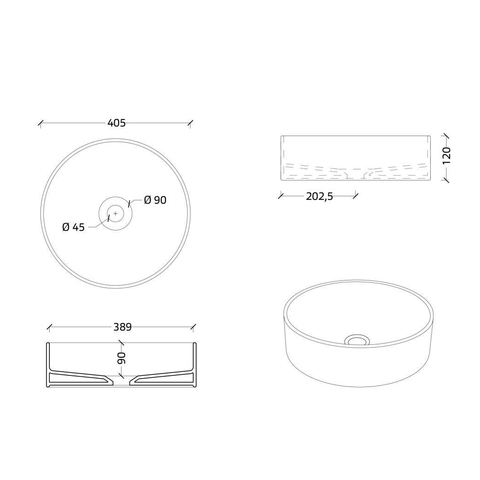 - Vasque à poser ronde avec diamètre d'environ 40 cm, idéale pour la salle de bains comme pour les toilettes