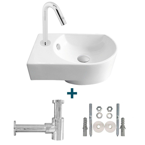 Allez par Van Marcke Flexy Kit lave-mains gauche 41x27x142cm comprenant robinet d'eau froide et siphon en porcelaine blanche.