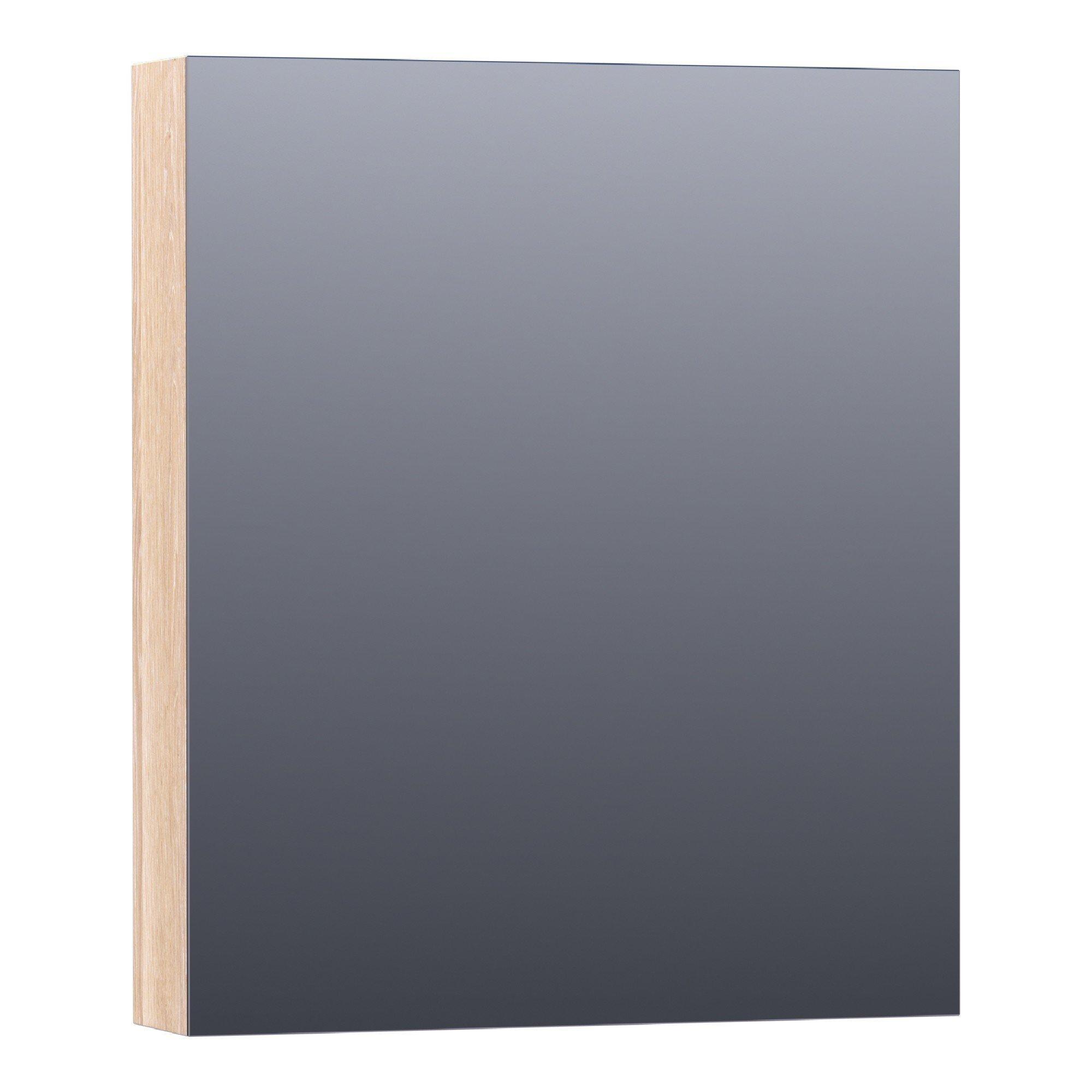 BRAUER Impress armoire de toilette avec miroir - 60x70x15cm - sans éclairage - avec 1 porte de miroir double face ouvrant vers la droite - chêne à lamelles blanc