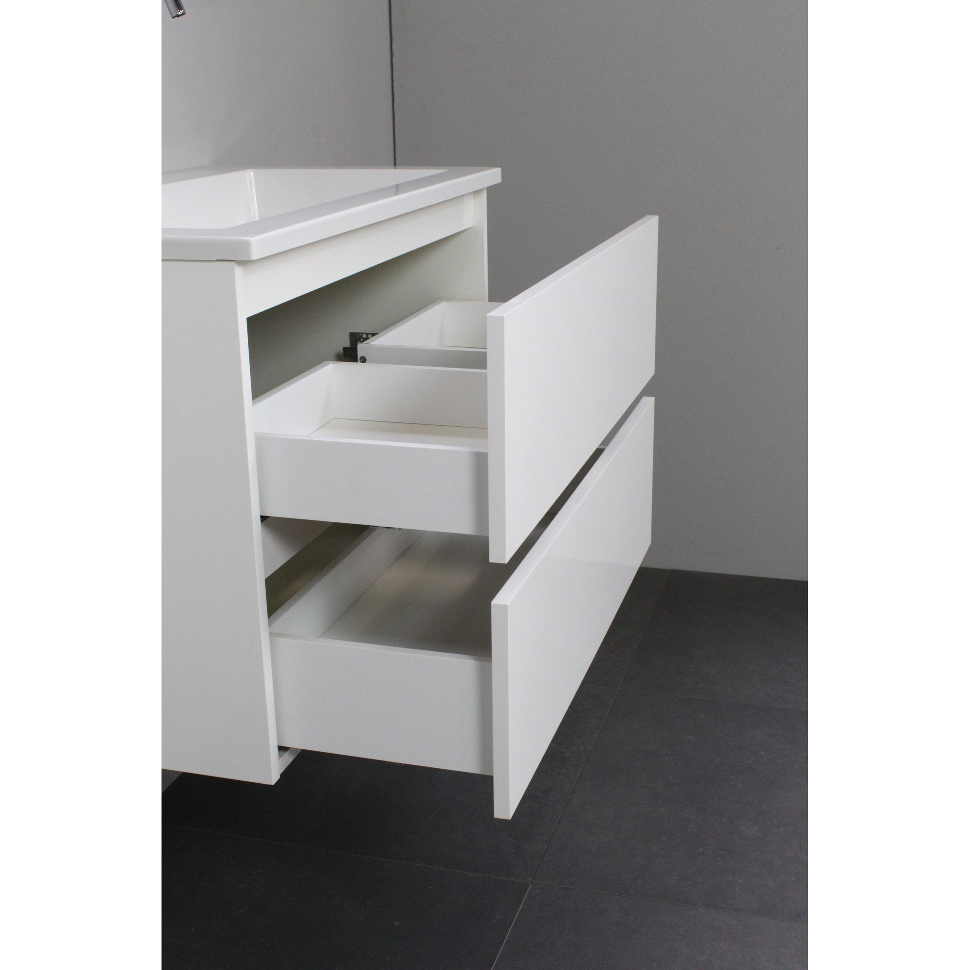 Avec sa finition blanc brillant et ses lignes épurées, l’ensemble meuble de salle de bains Basic Bella s’intègre parfaitement dans toute salle de bains moderne. Son aspect intemporel garantit que ce meuble durera des années sans se démoder. La combinaison de l’acrylique et du mélamine crée un meuble durable et facile d’entretien qui transforme chaque salle de bains en un espace élégant.