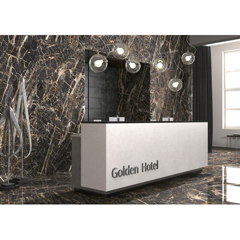 Le carrelage Cifre Ceramica dégage une allure majestueuse grâce à ses dimensions imposantes de 120x120cavec Ce grand carrelage carré crée un sentiment d'espace et de luxe dans chaque pièce où il est placé. L'aspect marbre en Noir Doré ajoute une touche de glamour à l'intérieur, créant une ambiance élégante et raffinée.