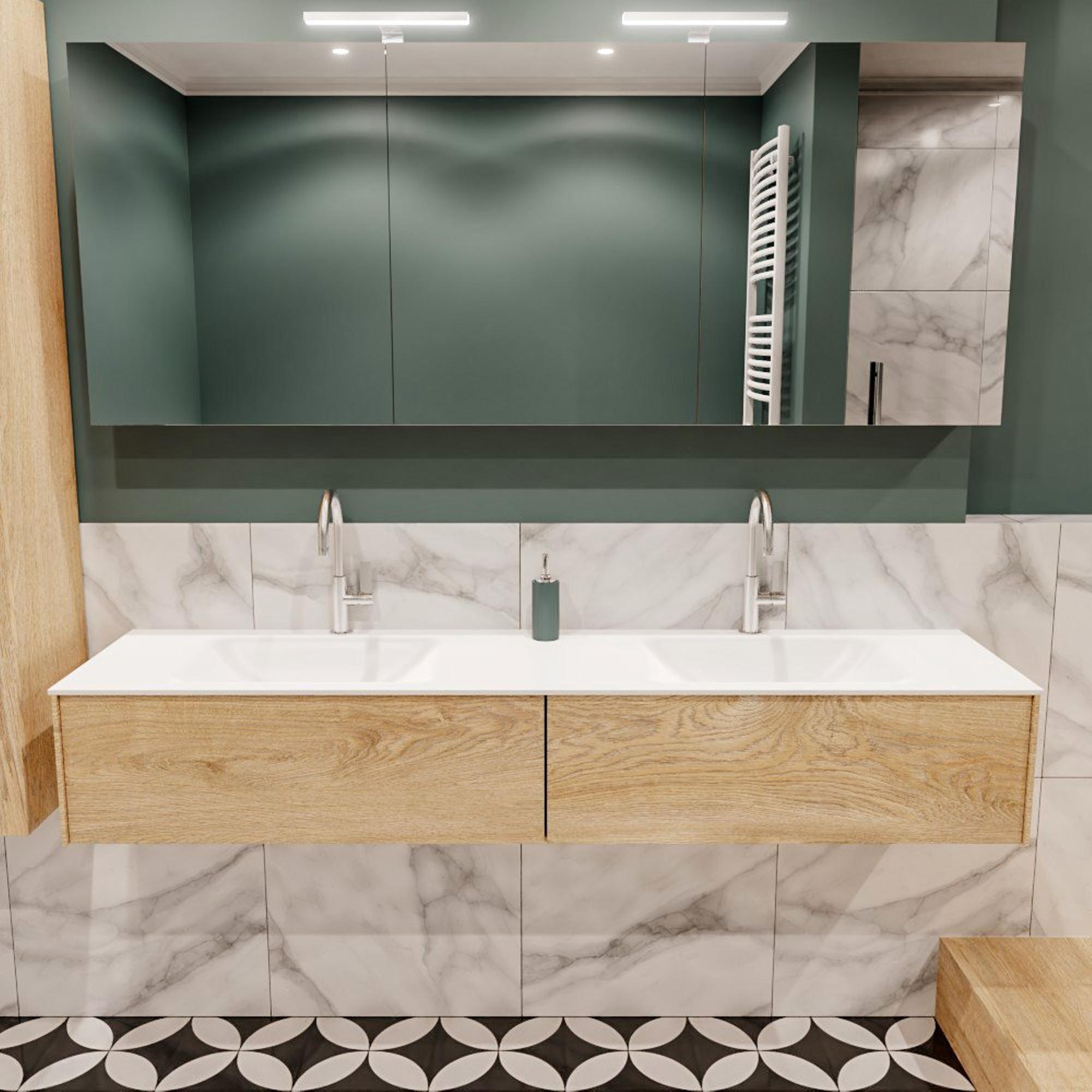 MONDIAZ LUSH Ensemble de meuble - 180cm - 2 tiroirs - lavabo cloud - 2 lavabos - 2 trous de robinet - chêne blanchi