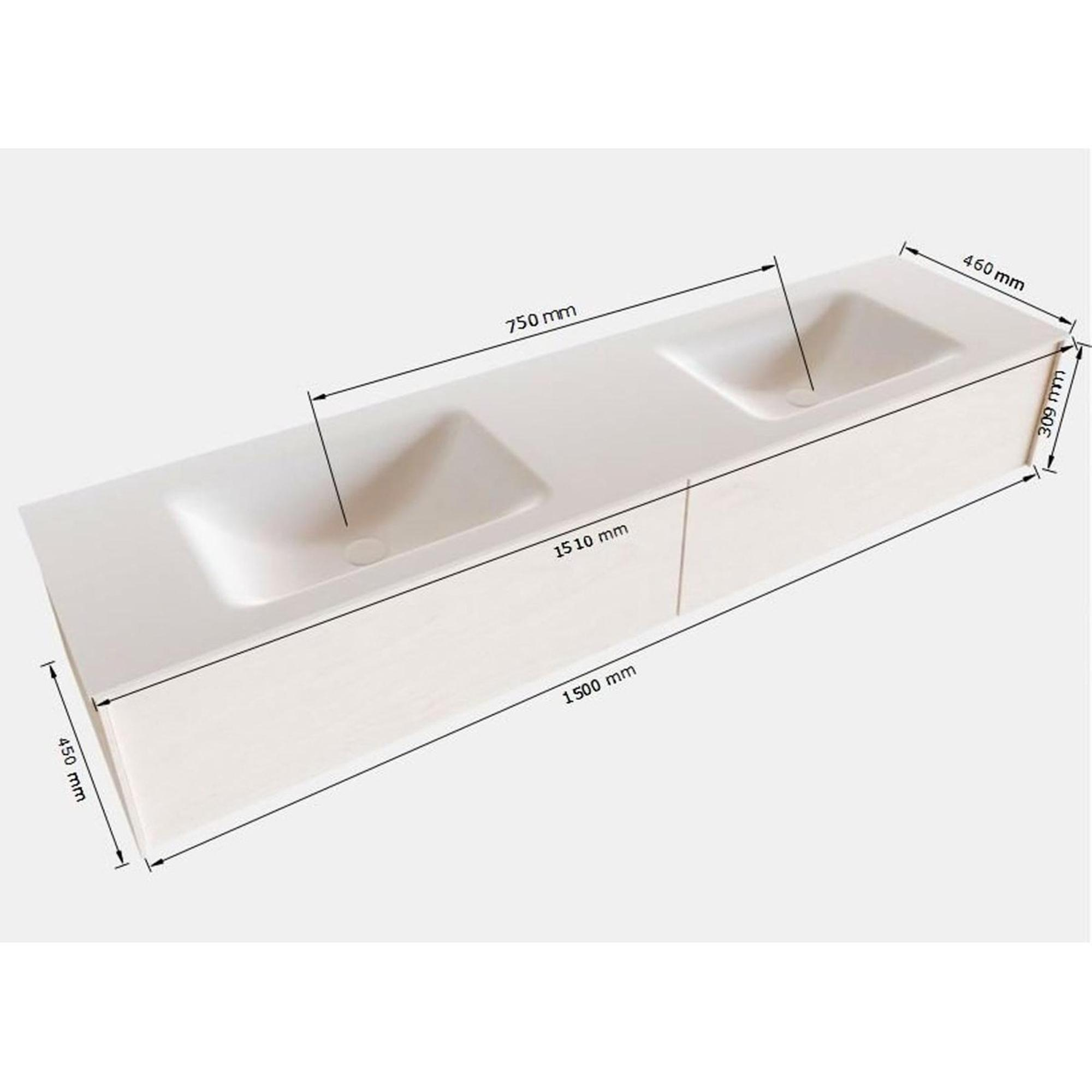 MONDIAZ LUSH Ensemble de meuble salle de bain - 150cm - 2 tiroirs - lavabo cloud - 2 vasques - 2 trous de robinet - anthracite