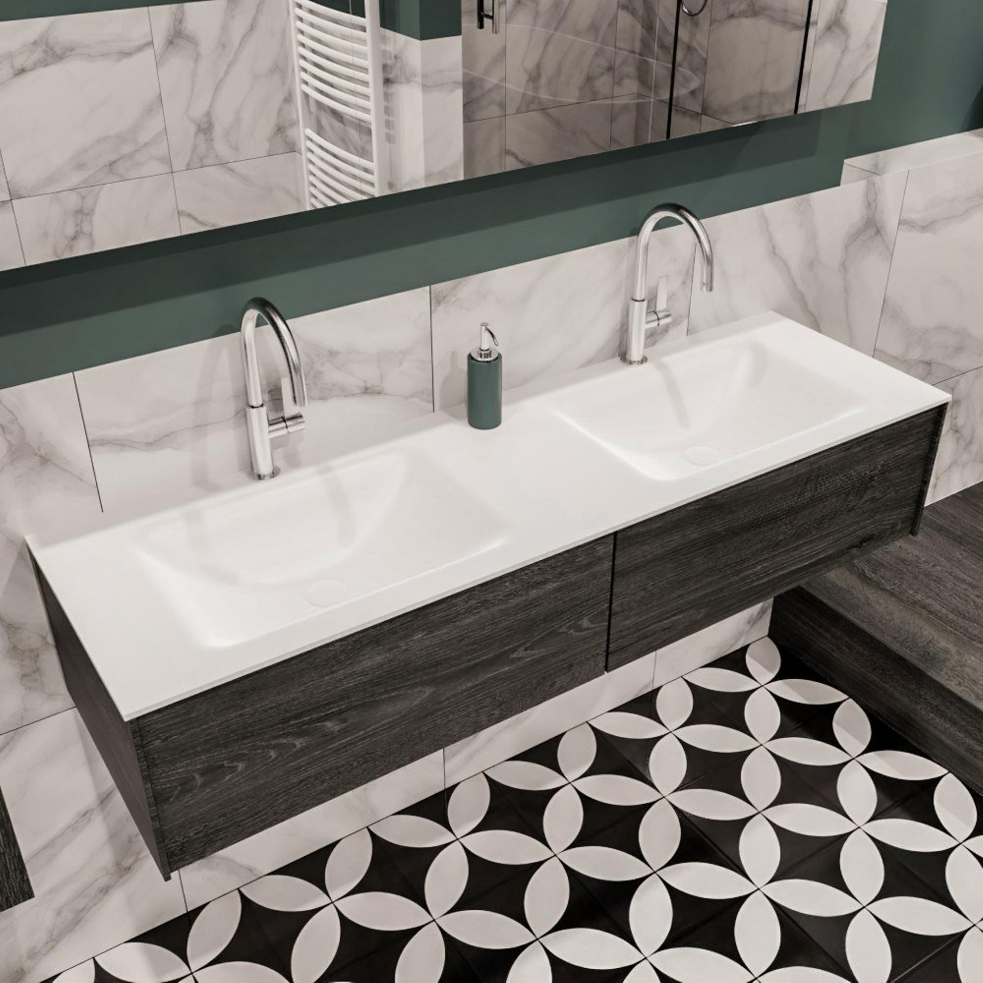 Non seulement cet ensemble de meuble salle de bain est esthétiquement attrayant, mais il est également extrêmement fonctionnel. Avec 2 tiroirs spacieux, il offre suffisamment d'espace de rangement pour tous vos accessoires de salle de bain. Les 2 vasques et trous de robinet permettent un usage confortable à deux personnes simultanément, ce qui le rend parfait pour les matins chargés.