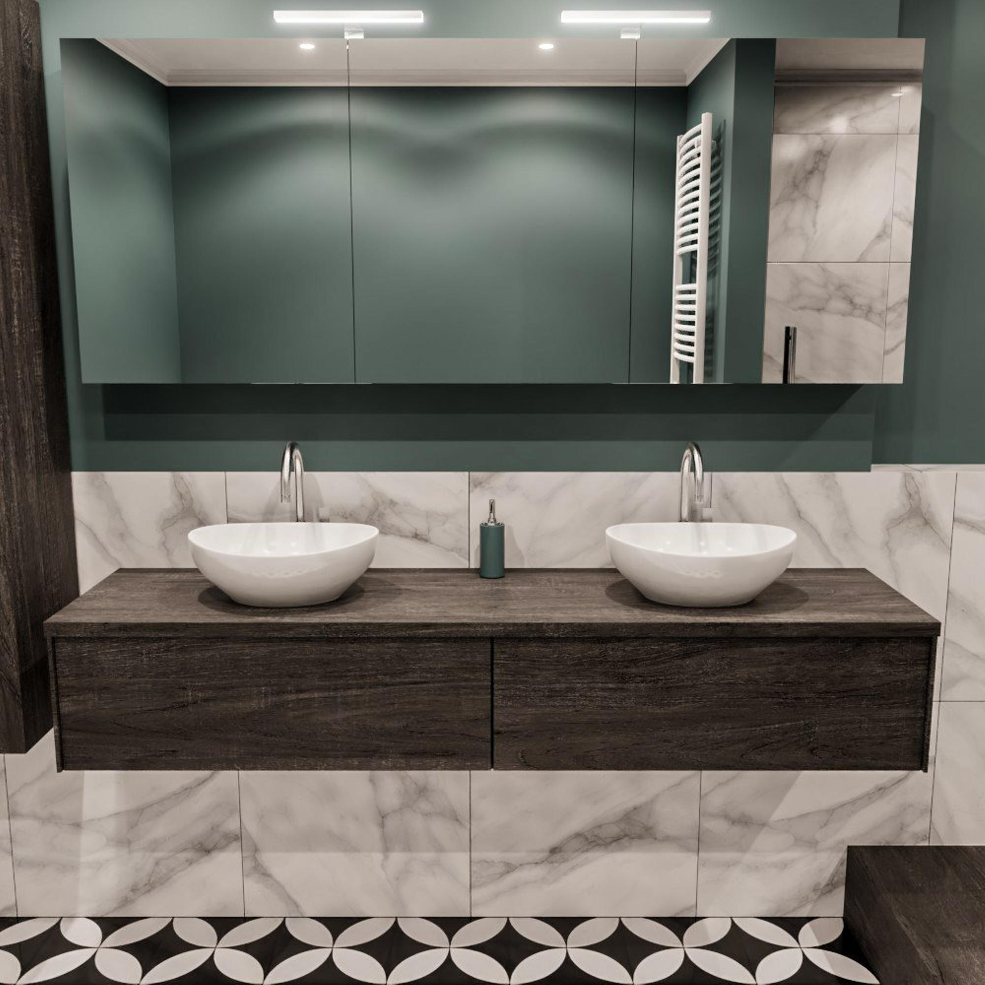 MONDIAZ LUSH Ensemble de meuble de salle de bain - 180cm - 2 tiroirs - lavabo BARCO - 2 lavabos - 2 trous de robinet - marron foncé