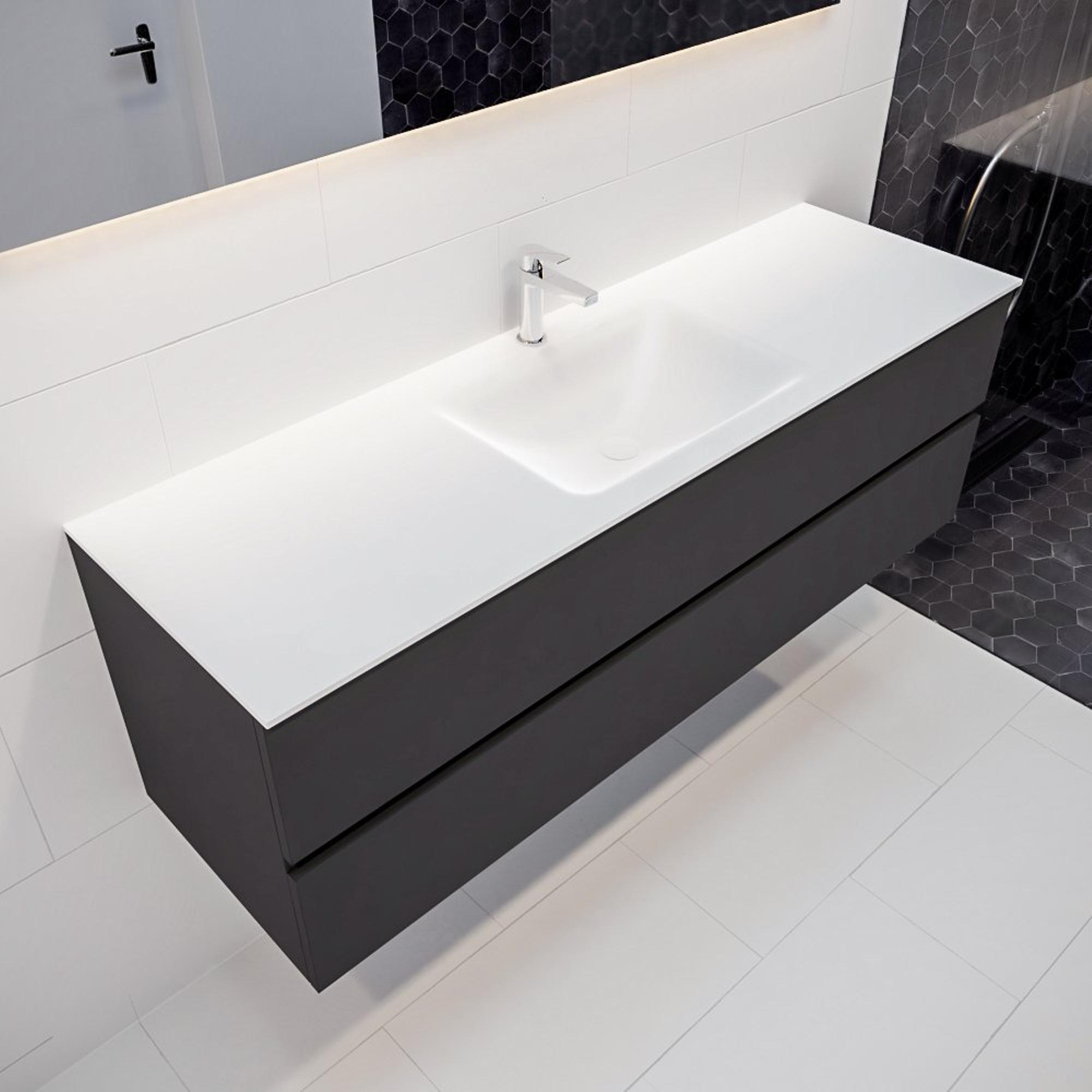 MONDIAZ VICA Ensemble de meuble - 150cm - 2 tiroirs - lavabo Cloud milieu - 1 trou de robinet - solid surface gris foncé
