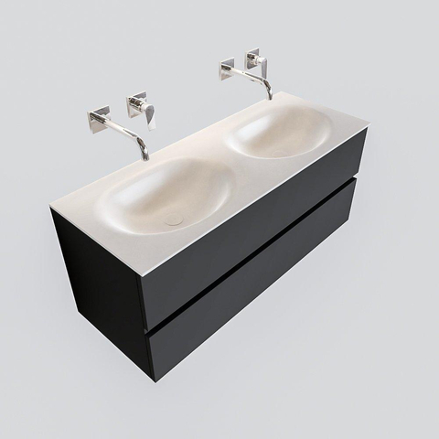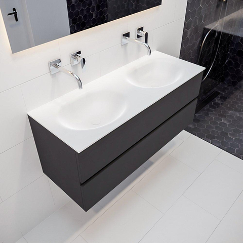 MONDIAZ VICA Ensemble de meuble salle de bain - 120cm - 2 tiroirs - lavabo Moon double - 0 trous de robinet - solid surface gris foncé