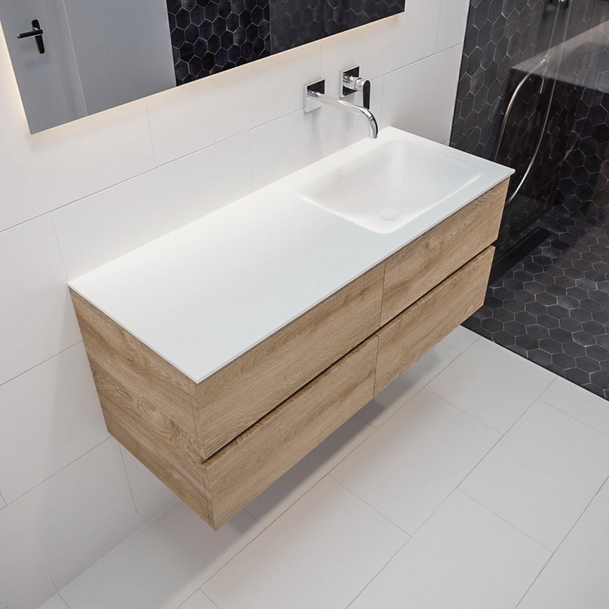MONDIAZ VICA Ensemble de meuble salle de bain - 120cm - 4 tiroirs - lavabo Cloud à droite - 0 trou de robinet - solid surface chêne blanchi