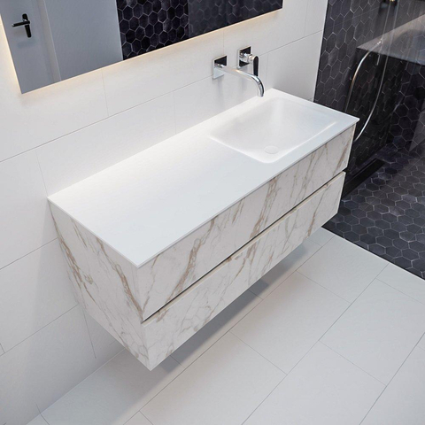 MONDIAZ VICA Ensemble de meuble salle de bain - 120cm - 2 tiroirs - lavabo Cloud à droite - 0 trous de robinet - solid surface marbre carrara