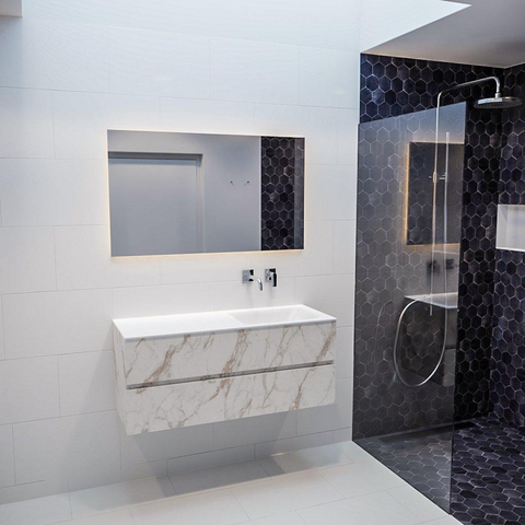 MONDIAZ VICA Ensemble de meuble salle de bain - 120cm - 2 tiroirs - lavabo Cloud droite - 0 trou de robinet - solid surface marbre carrara