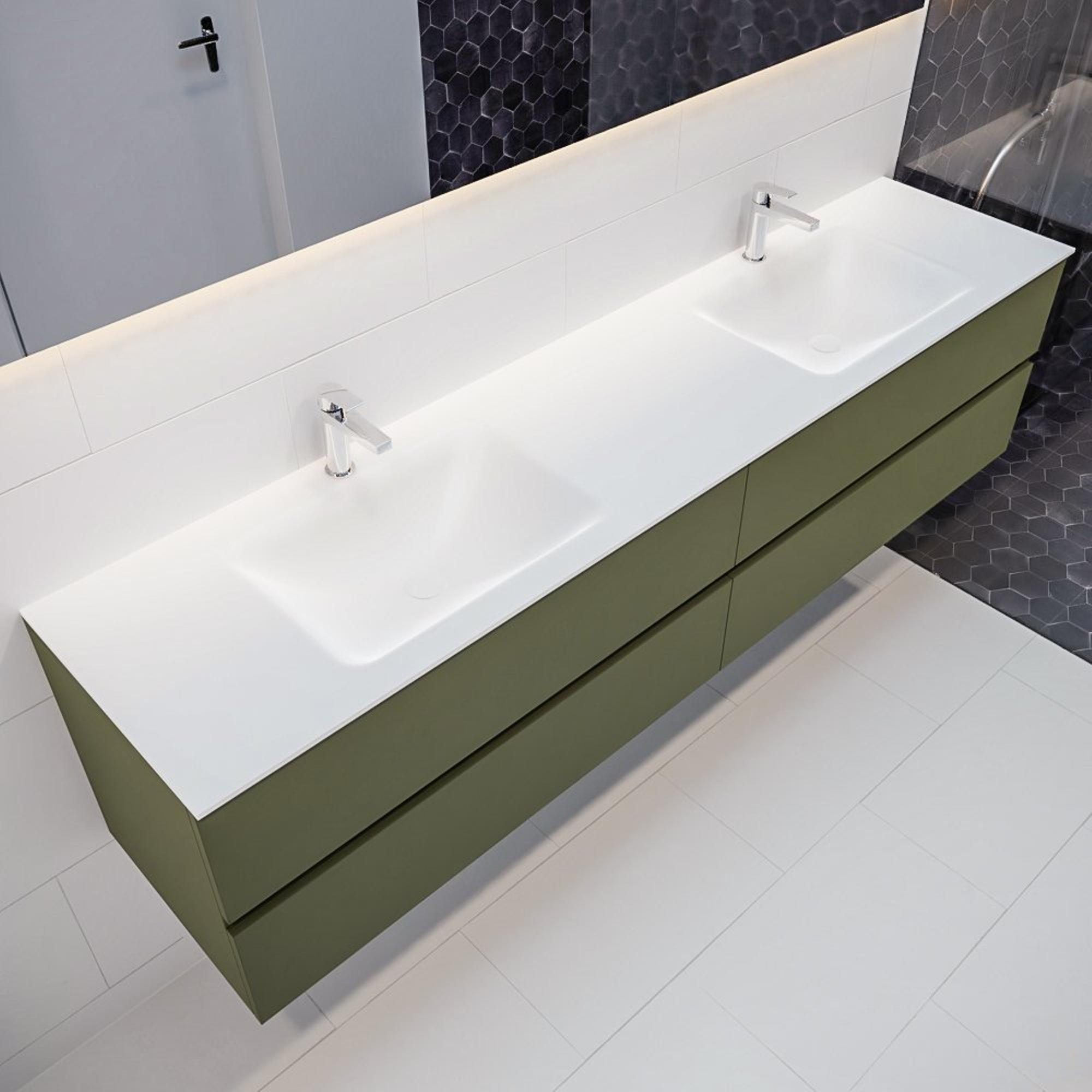 MONDIAZ VICA Ensemble de meuble salle de bain - 200cm - 4 tiroirs - lavabo Cloud double - 2 trous de robinet - solid surface army