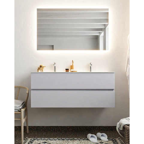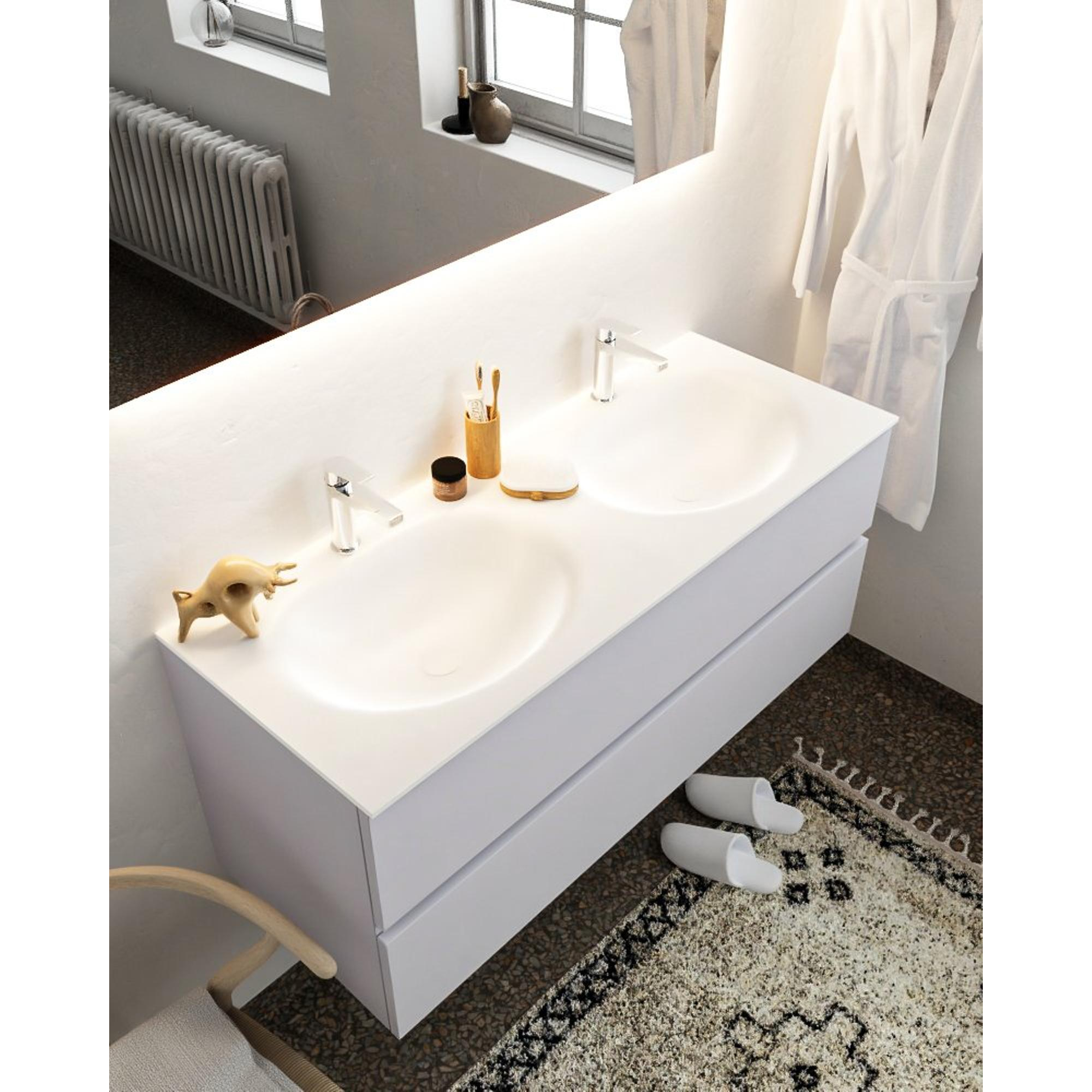 MONDIAZ VICA Ensemble de meuble de salle de bain - 120cm - 2 tiroirs - lavabo Moon double - 2 trous de robinet - solid surface cale