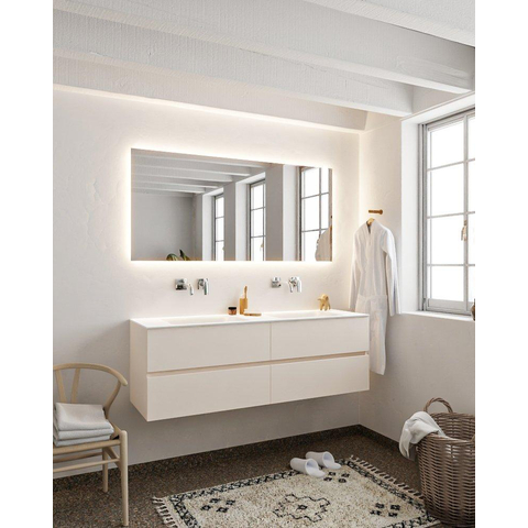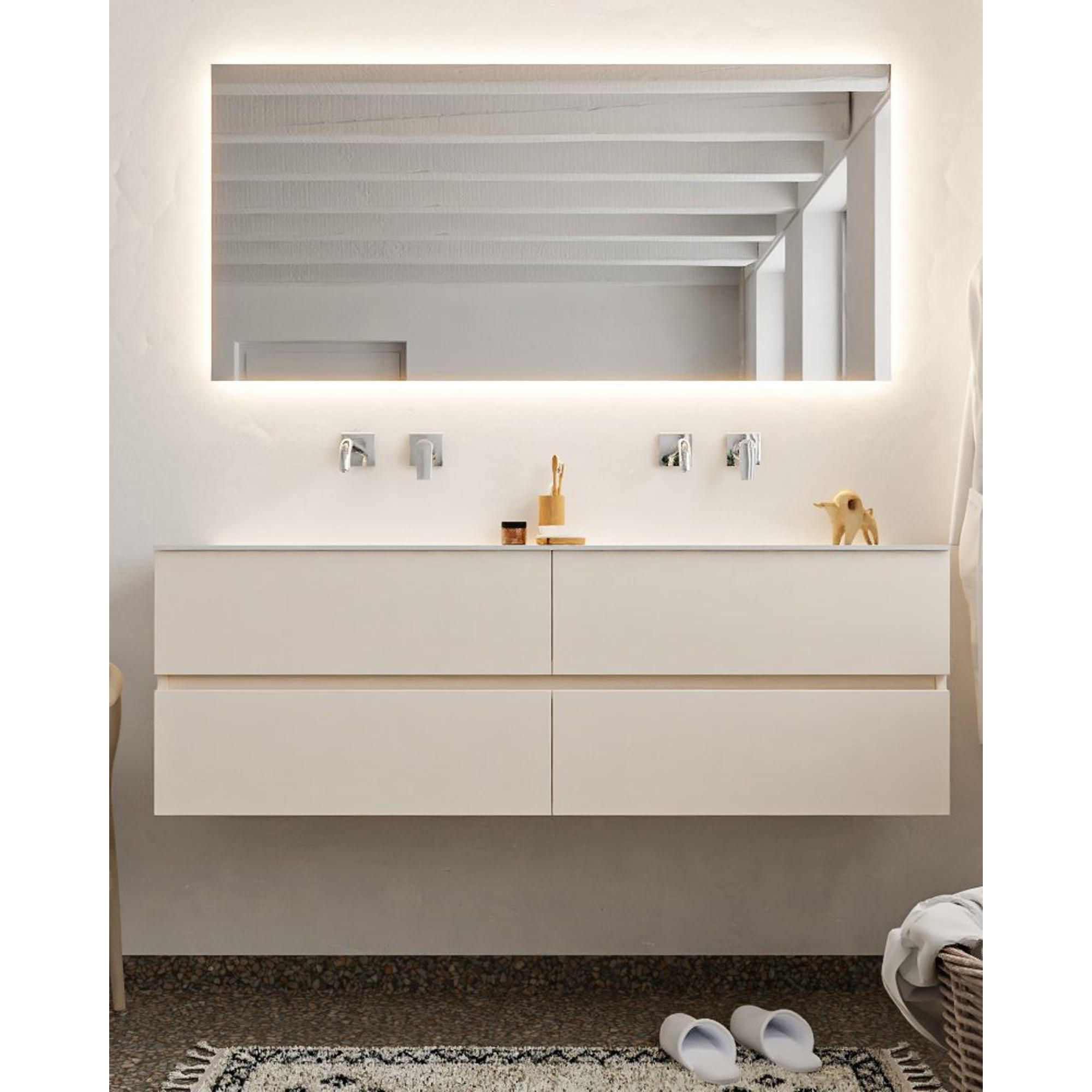 MONDIAZ VICA Ensemble de meuble salle de bain - 150cm - 4 tiroirs - lavabo Cloud double - 0 trous de robinet - solid surface lin