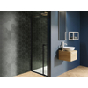 La paroi est en verre trempé d'une épaisseur de 6 mm et le bas de la porte peut être considéré comme un barrage qui retient l'eau, empêchant ainsi l'eau de s'écouler dans la salle de bain. De plus, la paroi peut être installée de manière réversible et la porte a une fermeture magnétique. La paroi est également adaptée pour être montée sur un receveur de douche ou un sol carrelé.