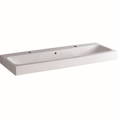 Geberit Icon lavabo 120x48,5x16cm 1 cuve 2 trous de robinetterie gauche et droite avec trop-plein céramique blanc brillant