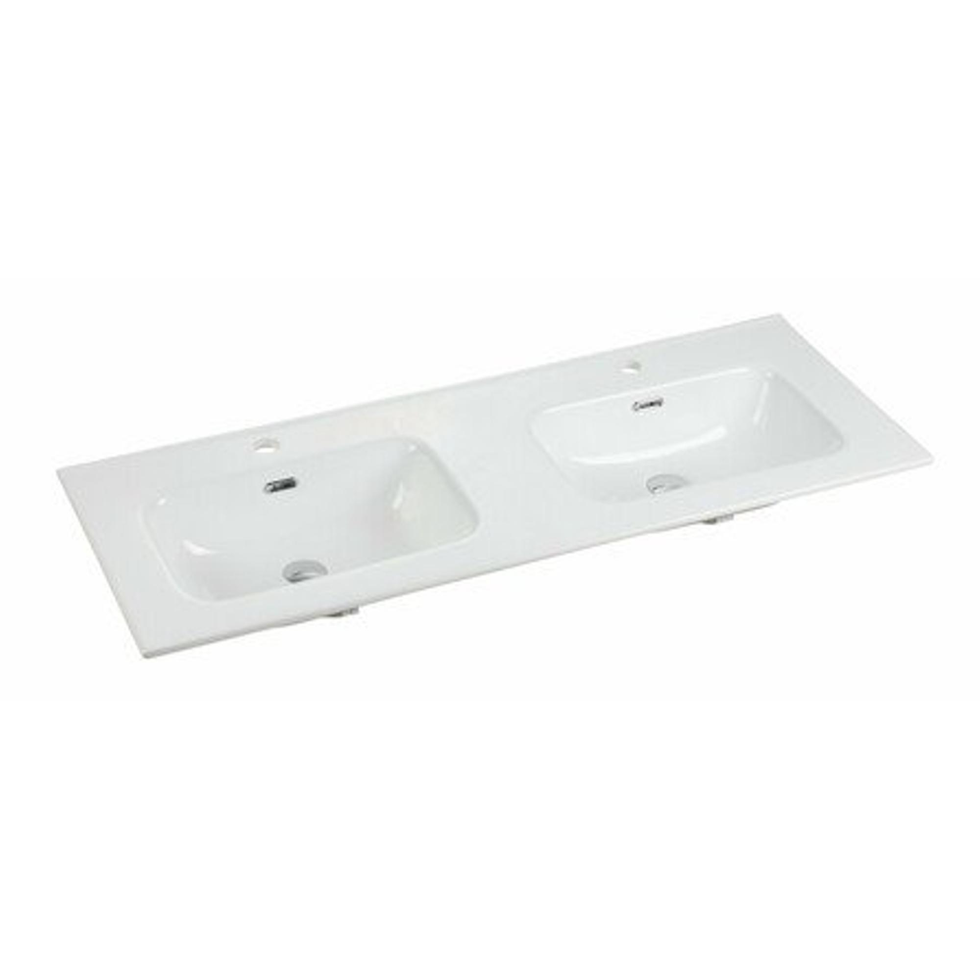 Go by Van Marcke lavabo-plan pour meuble 120x46x1.7cm 2 vasques intégrées 2 trous de robinetterie Porcelaine blanc brillant
