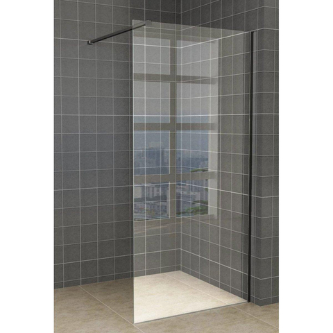 Douche à l'italienne Wiesbaden Slim 90x200cm avec verre clair de 8mm avec profil noir et barre de renfort