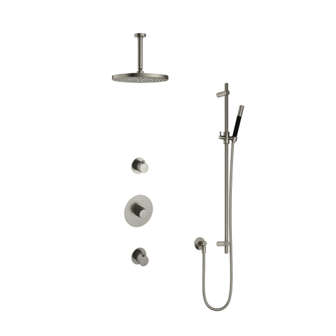 Hotbath Cobber IBS20 Ensemble de douche de pluie encastré - bras de plafond 15 cm - douche de tête ronde 30 cm - douchette barre - barre coulissante - nickel brossé