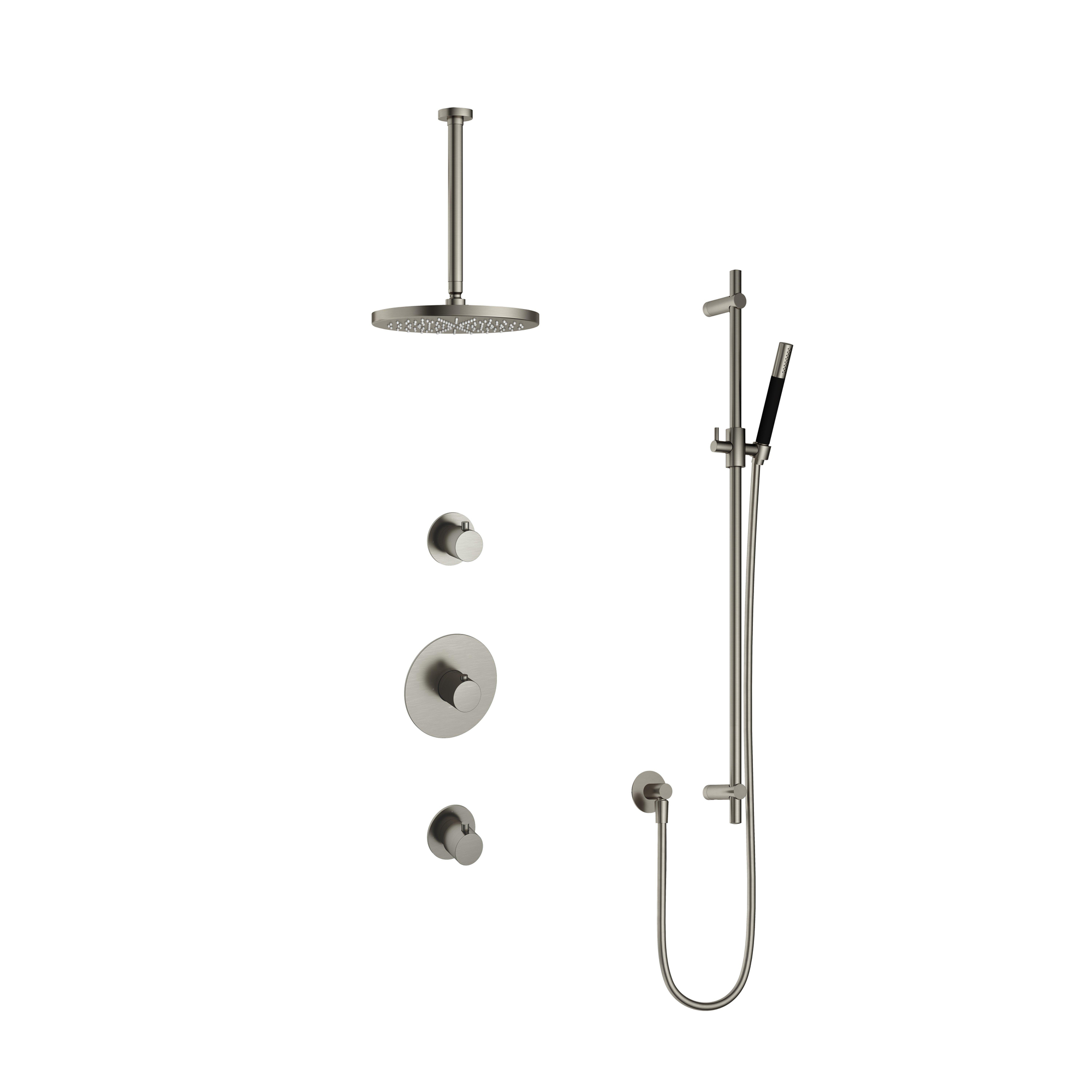 Hotbath Cobber IBS20 Ensemble de douche pluie encastré - bras de plafond 30 cm - pomme de douche ronde 30 cm - douchette à main stick - barre de douche - nickel brossé