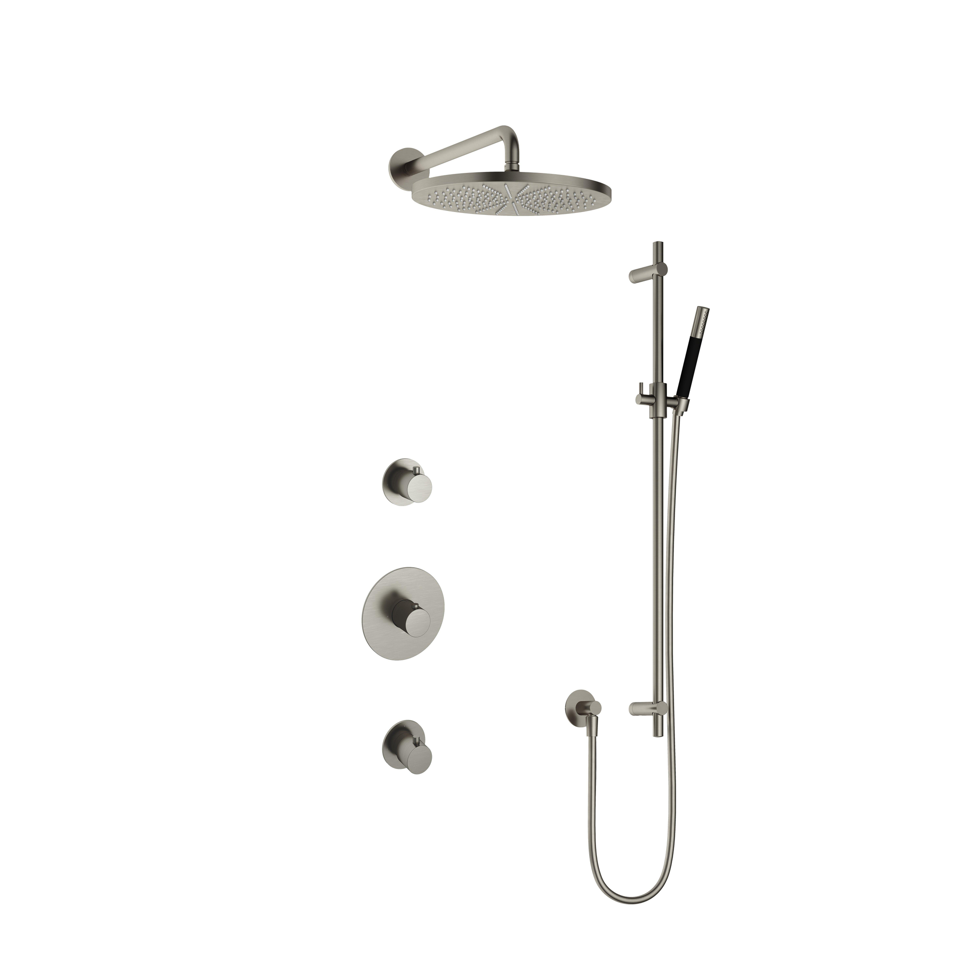 Hotbath Cobber Ensemble de douche de tête encastré IBS20 - bras mural 35 cm - douche de tête ronde 30 cm - douchette barre - barre de douche - nickel brossé