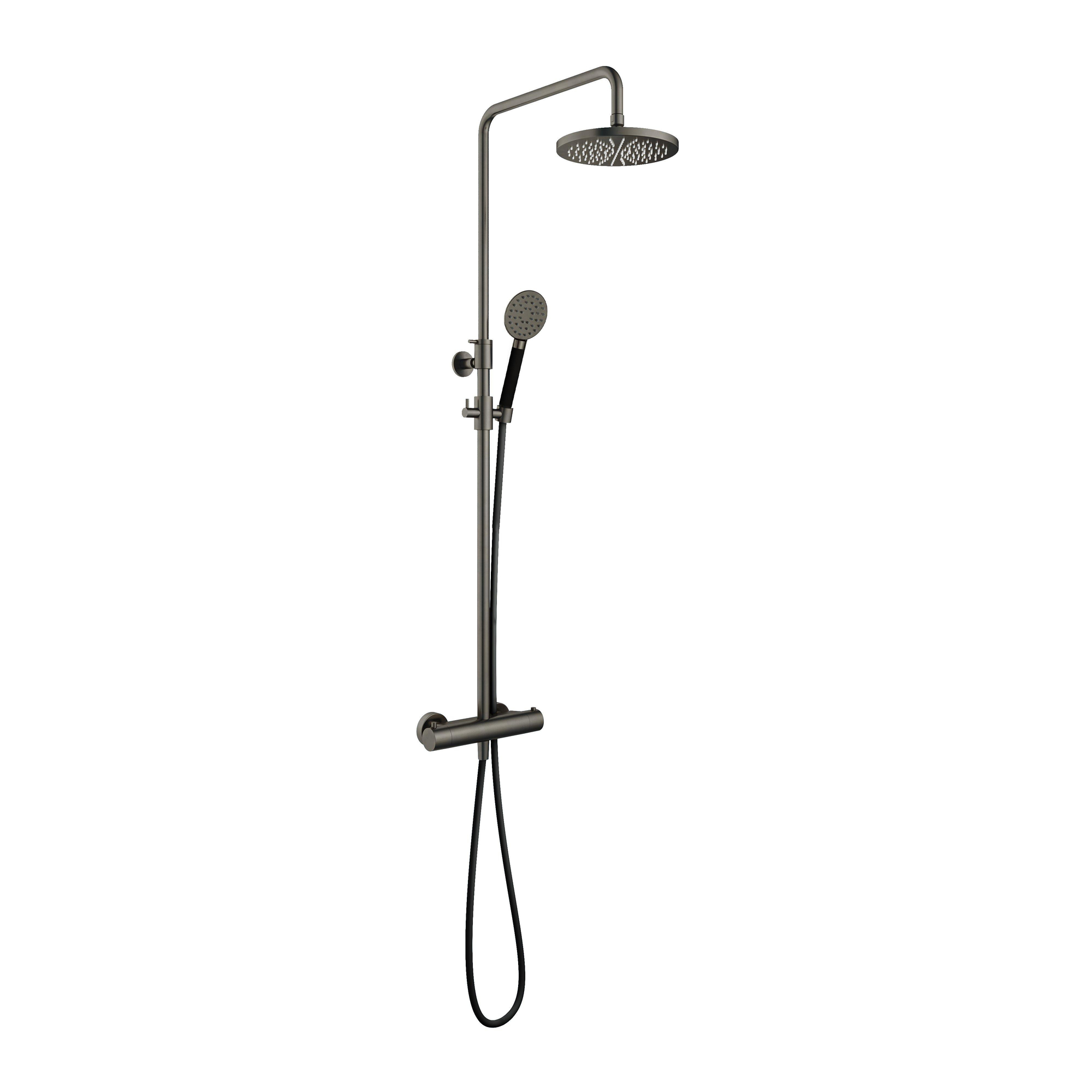 Hotbath Cobber ensemble de douche pluie thermostatique avec douche de tête ronde 20 cm douchette ronde fer vieilli