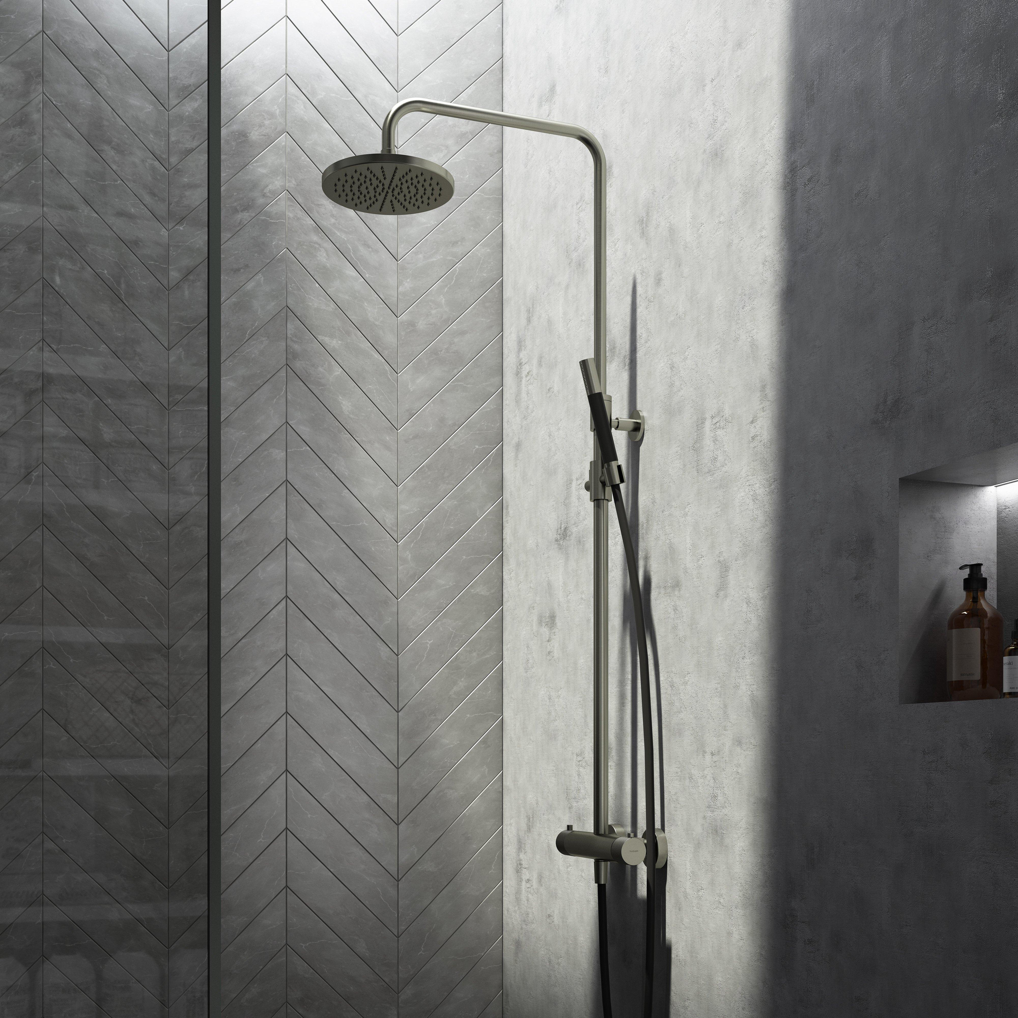 Hotbath Cobber X SDS9 ensemble de douche thermostatique avec douche pluie ronde de 20 cm et douchette en nickel brossé