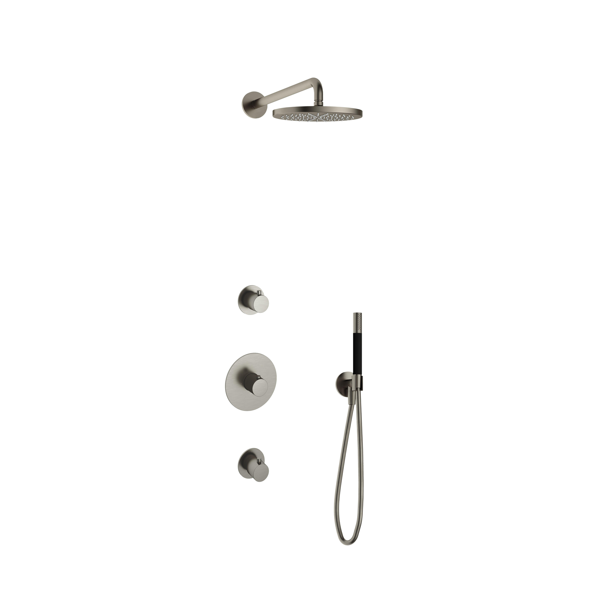 Imaginez une salle de bains où chaque douche ressemble à un moment de pure détente et de luxe. Cet ensemble de douche de tête hisse votre espace de douche à un niveau supérieur grâce à une parfaite combinaison de style et de facilité d’utilisation. Grâce à sa conception étudiée et à ses matériaux de haute qualité, vous profitez non seulement d’une apparence moderne, mais également d’une expérience de douche confortable et rafraîchissante. La combinaison d’une douche de tête généreuse et d’une pratique douchette à main barre vous offre toute la liberté d’aménager votre douche exactement comme vous le souhaitez. De plus, la finition en nickel brossé apporte une brillance subtile qui s’harmonise sans effort avec une grande variété de styles de salle de bains. Vous transformez ainsi votre salle de bains en un oasis de calme et d’élégance, où vous entrez chaque jour sous la douche avec plaisir.