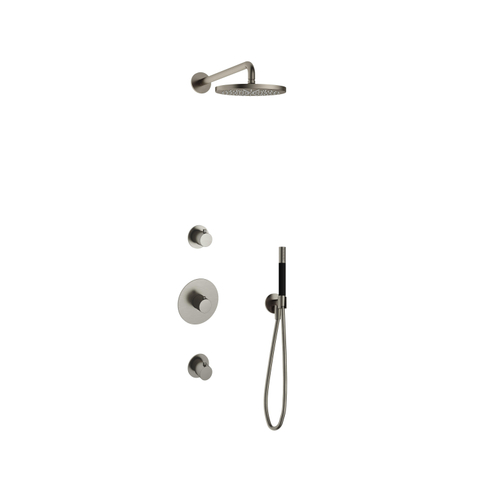 Hotbath Cobber IBS20 Ensemble de douche de tête encastré - bras mural 35 cm - douche de tête ronde 20 cm - douchette à main barre - nickel brossé