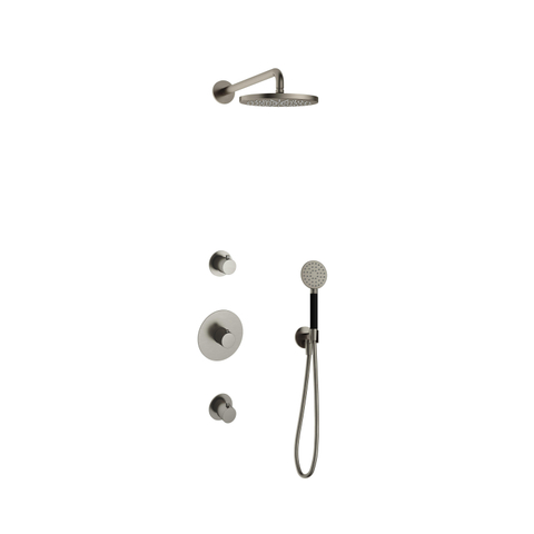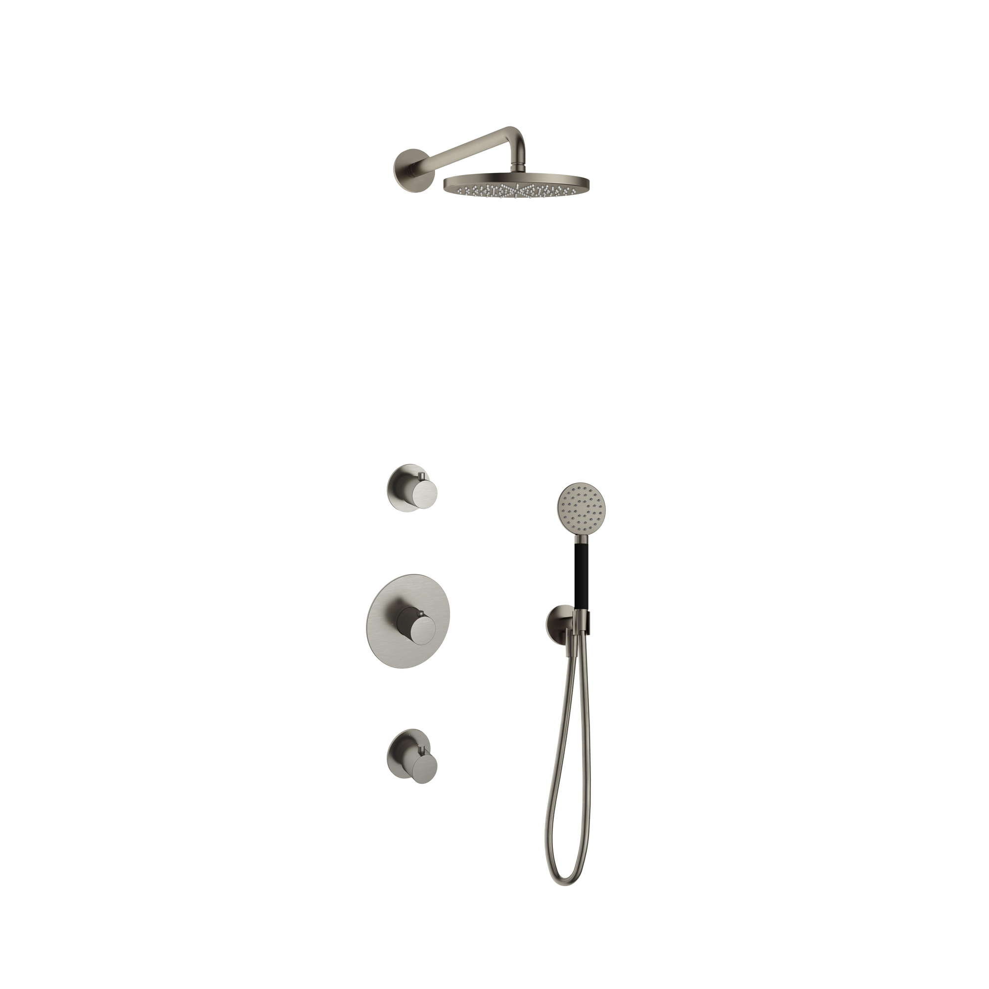 Hotbath Cobber IBS20 Ensemble de douche de tête encastré - bras mural 35 cm - douche de tête ronde 20 cm - douchette 3 jets - nickel brossé