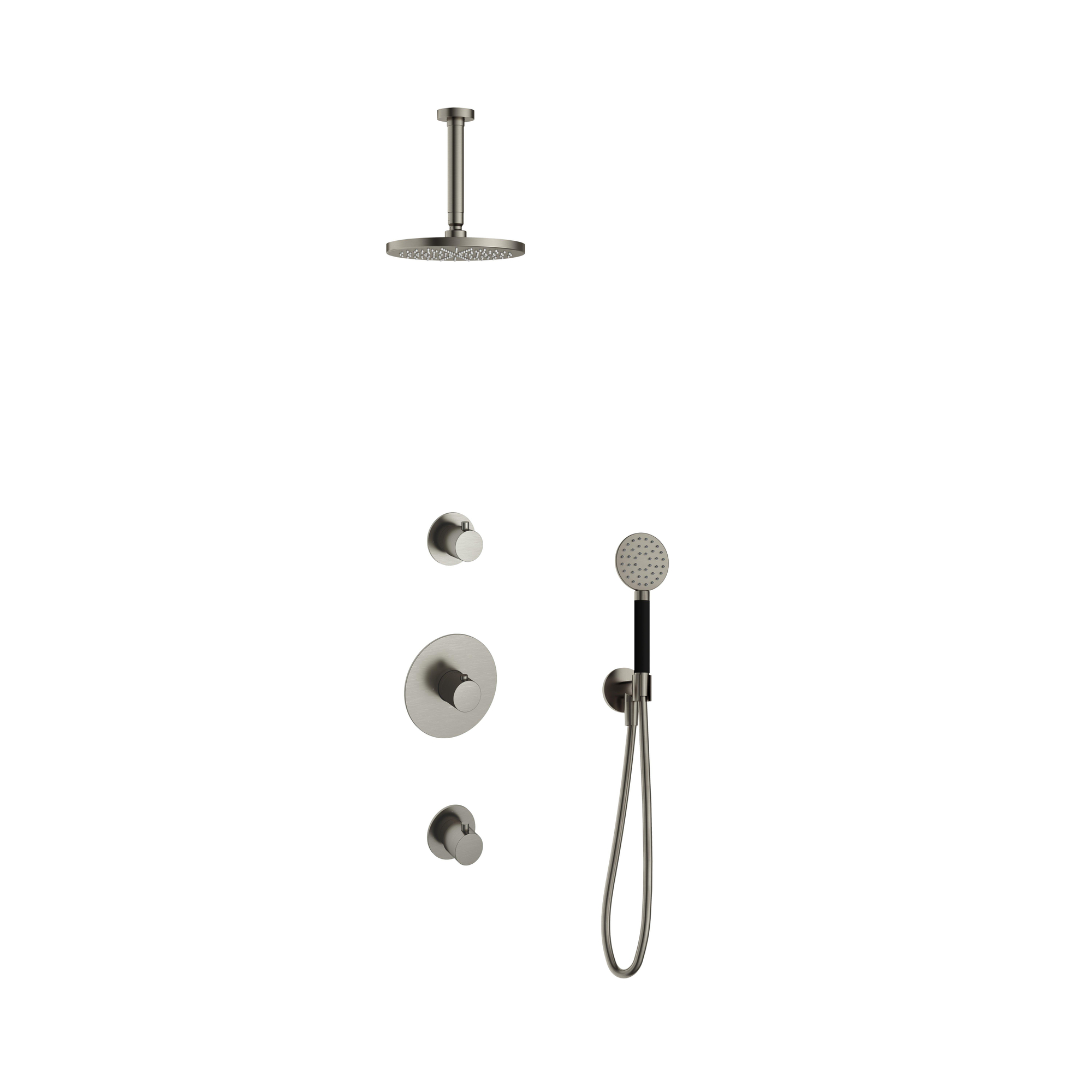 Hotbath Cobber IBS20 Ensemble de douche de tête encastré - bras de plafond 15 cm - douche de tête ronde 20 cm - douchette 3 jets - nickel brossé