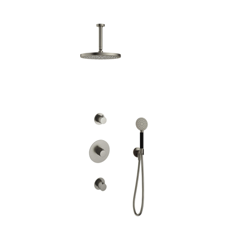 Hotbath Cobber Ensemble de douche de tête encastré - bras de plafond 15 cm - douche de tête ronde 30 cm - douchette 3 jets - nickel brossé