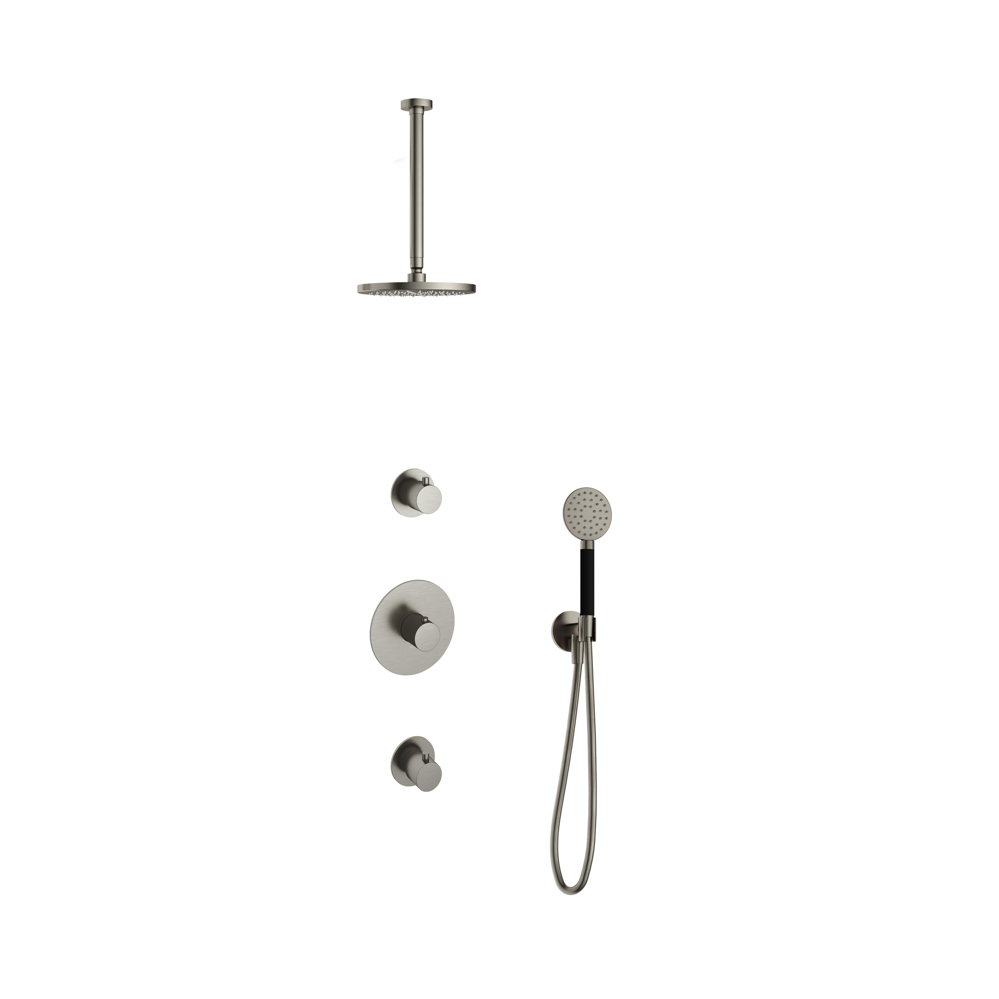 Hotbath Cobber IBS20 Ensemble de douche de pluie encastré - bras de plafond 30 cm - douche de tête ronde 20 cm - douchette à main 3 jets - nickel brossé SW440655