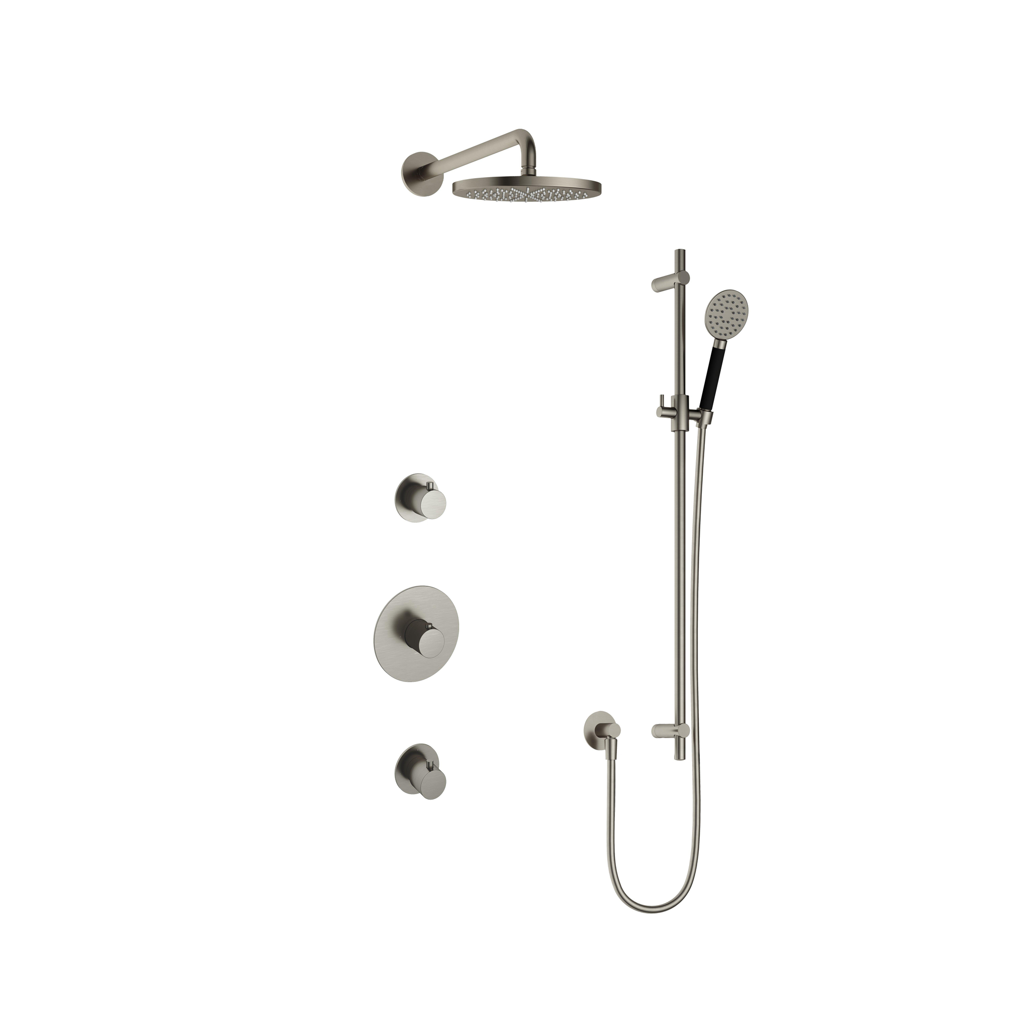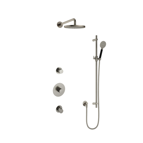 Hotbath Cobber IBS20 Ensemble de douche de tête encastré - bras mural 35 cm - douche de tête ronde 20 cm - douchette à main 3 jets - barre de douche - nickel brossé
