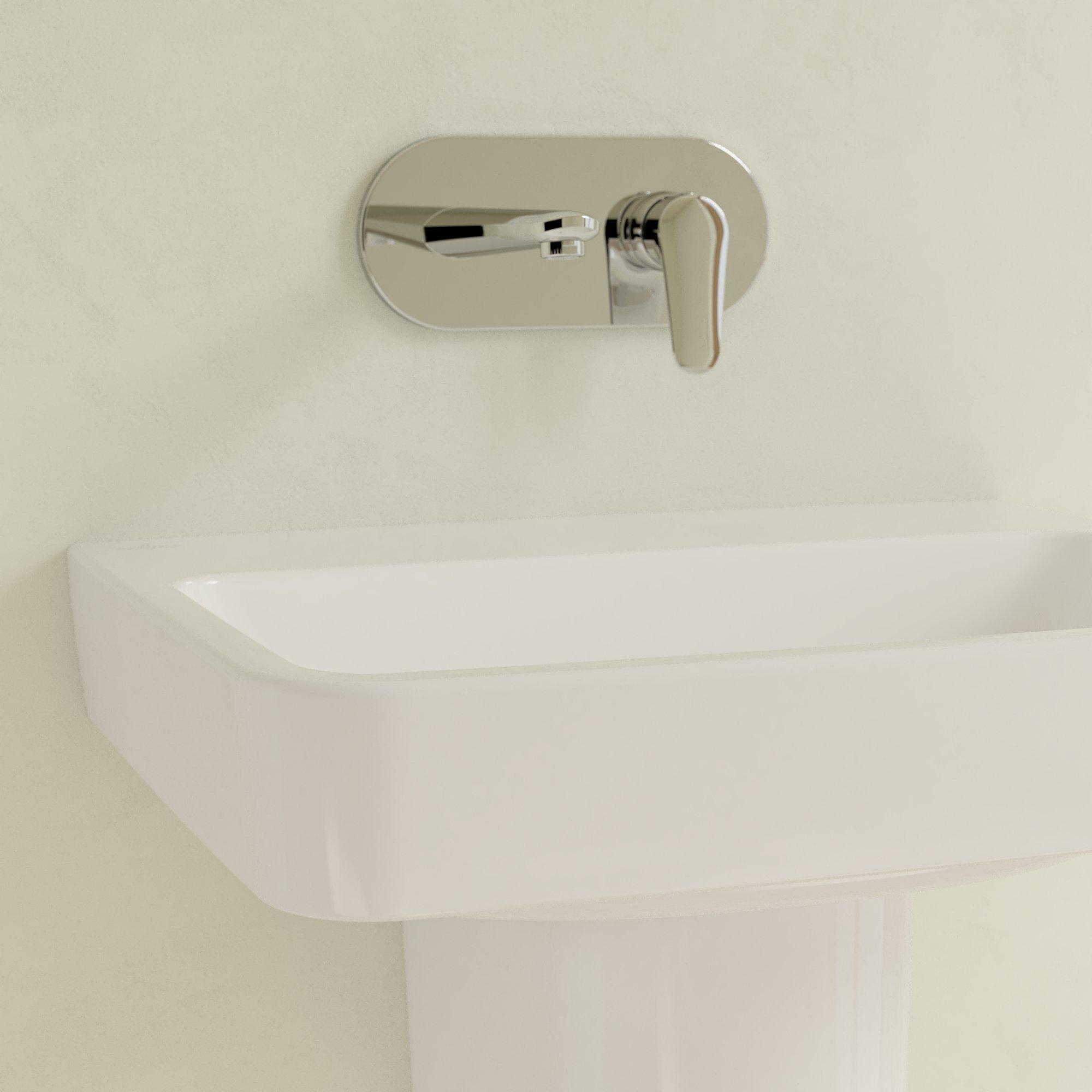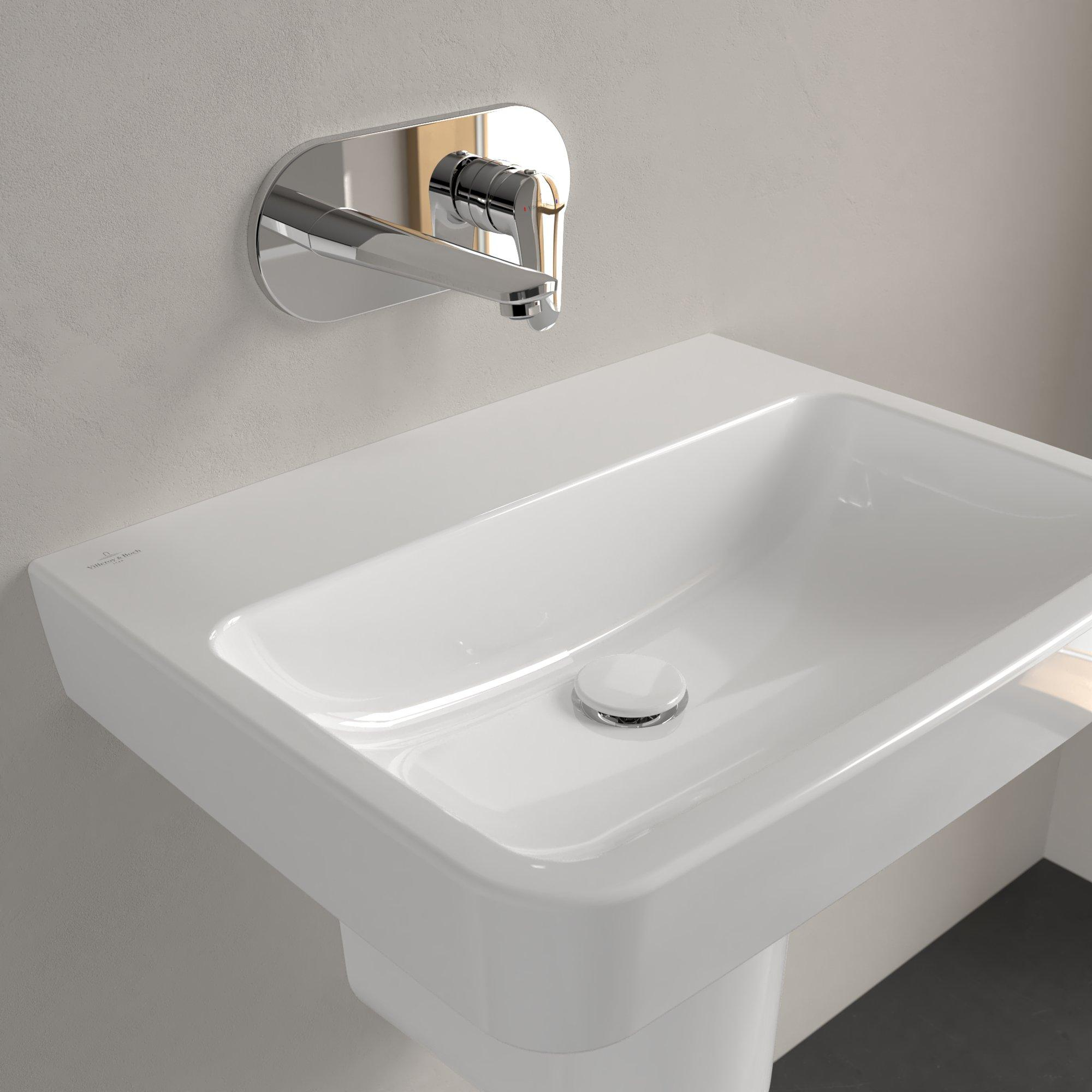 La large plage de robinetterie et de dépose offre suffisamment de place pour le savon, la lotion, le gobelet et autres produits du quotidien, ce qui réduit le besoin d’accessoires séparés et donne un ensemble visuellement plus calme. Combinez le lavabo avec une console ou un meuble sous-vasque et vous créez un espace de rangement supplémentaire pour les serviettes et les produits de soin, sans que la salle de bains ne paraisse plus encombrée. Comme le modèle est adapté au montage mural, le sol reste dégagé et l’espace semble optiquement plus grand et plus aéré. Cette flexibilité rend le produit particulièrement adapté aussi bien aux projets de rénovation qu’aux salles de bains de construction neuve dans lesquelles vous recherchez une solution réfléchie et durable.