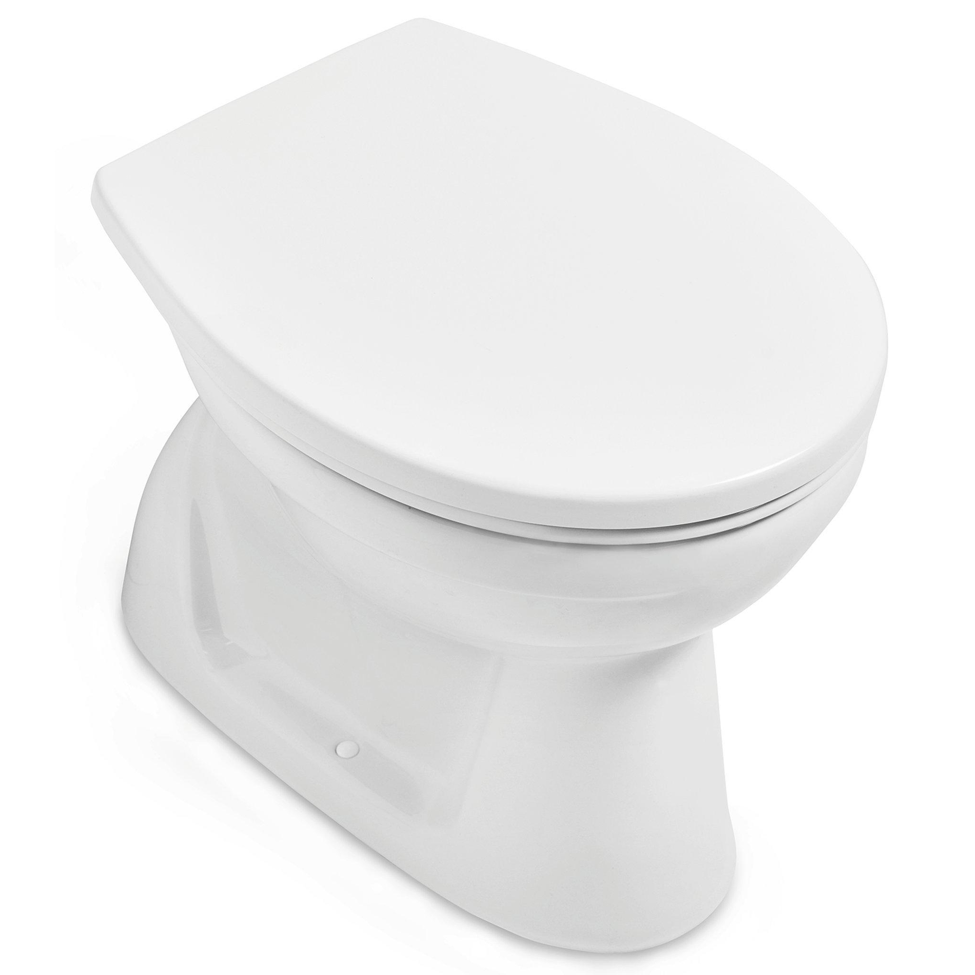 Grâce à la conception à fond profond, les déchets disparaissent directement sous l’eau, ce qui limite fortement les odeurs et permet aux toilettes de paraître fraîches après chaque chasse. La hauteur confortable et la forme ovale sont conçues dans un souci d’ergonomie, afin que les enfants comme les adultes puissent s’asseoir agréablement. En combinaison avec un réservoir apparent adapté, vous créez une installation solide et stable qui dure longtemps. Le raccordement avec sortie verticale (AO) fait en outre de ce modèle un choix logique lorsque votre évacuation existante sort du sol et que vous souhaitez remplacer ou rénover sans travaux lourds.