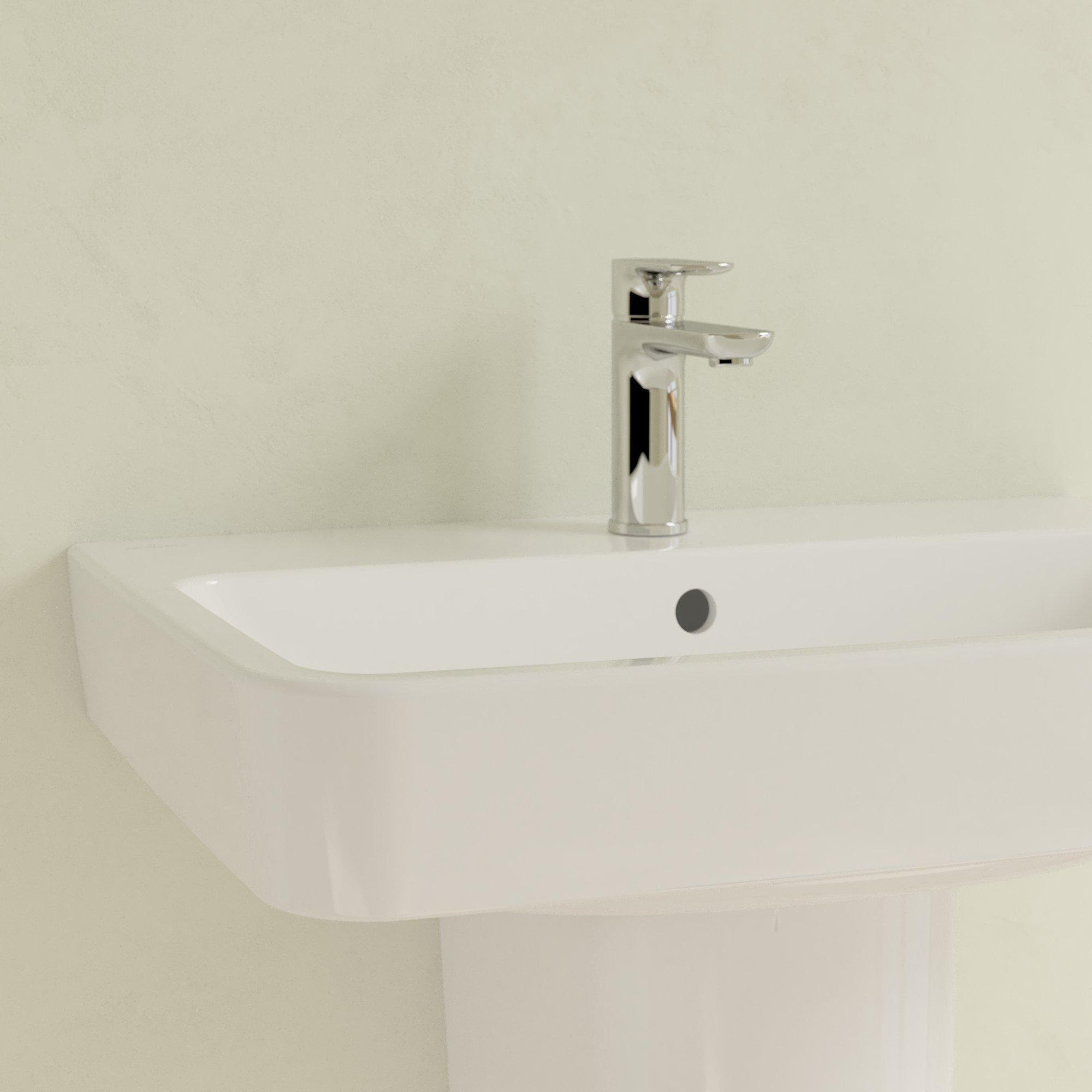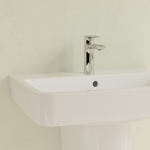 Si vous recherchez un lavabo épuré et fiable qui s’intègre aussi bien dans une salle de bains familiale moderne que dans un espace WC compact, ce modèle est un choix judicieux. La large plage de robinetterie offre de la place pour les essentiels du quotidien tels que le savon, les brosses à dents et les produits de soin, tandis que la cuve profonde limite au maximum les éclaboussures. Grâce à son design rectangulaire intemporel aux angles légèrement arrondis, ce lavabo se combine sans effort avec de nombreux styles de salle de bains, du plus minimaliste au plus classique. La finition céramique haut de gamme avec surface déperlante en fait en outre une solution pratique si vous aimez une salle de bains ordonnée et hygiénique sans vouloir perdre de temps avec un nettoyage intensif.
