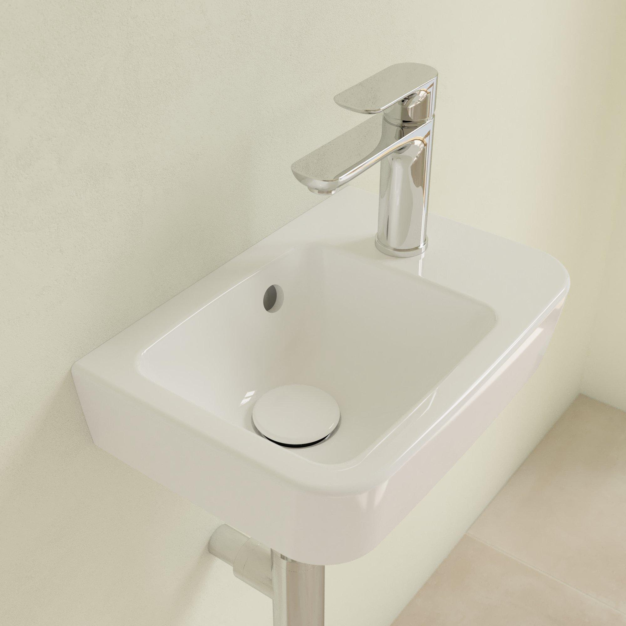 Vous recherchez un petit lave-mains compact et au design épuré pour vos toilettes ou une petite salle de bains, qui ne soit pas seulement esthétique mais aussi pratique au quotidien ? Dans ce cas, ce modèle est un choix judicieux. Grâce à son format élancé, il s’intègre parfaitement dans les espaces étroits, tandis que le bord de robinetterie latéral évite que le lave-mains ne dépasse trop dans la pièce. Idéal si vos toilettes ou votre salle de bains invités disposent d’une surface limitée, mais que vous souhaitez tout de même créer un point d’eau complet et confortable. L’association d’un design rectiligne moderne avec des angles doucement arrondis permet une intégration facile dans différents styles, du minimaliste au moderne intemporel. Parallèlement, la céramique de haute qualité avec revêtement antisalissures garantit que vous passerez peu de temps à nettoyer et que la surface conservera pendant des années un aspect frais et comme neuf.