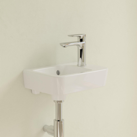 Avec une largeur de 36 cm et une profondeur de seulement 25 cm, ce lave-mains est idéal pour les toilettes étroites, les renfoncements ou les petites salles de bains. Le bord de robinetterie est placé sur le côté, ce qui réduit la saillie totale et vous laisse davantage de liberté de mouvement pour entrer et sortir. Cela rend ce modèle particulièrement adapté lorsque la porte passe près du lave-mains ou que chaque centimètre compte. Grâce à sa conception étudiée, vous disposez néanmoins de suffisamment d’espace pour vous laver confortablement les mains, tandis que le trop-plein intégré offre une sécurité supplémentaire contre les débordements.