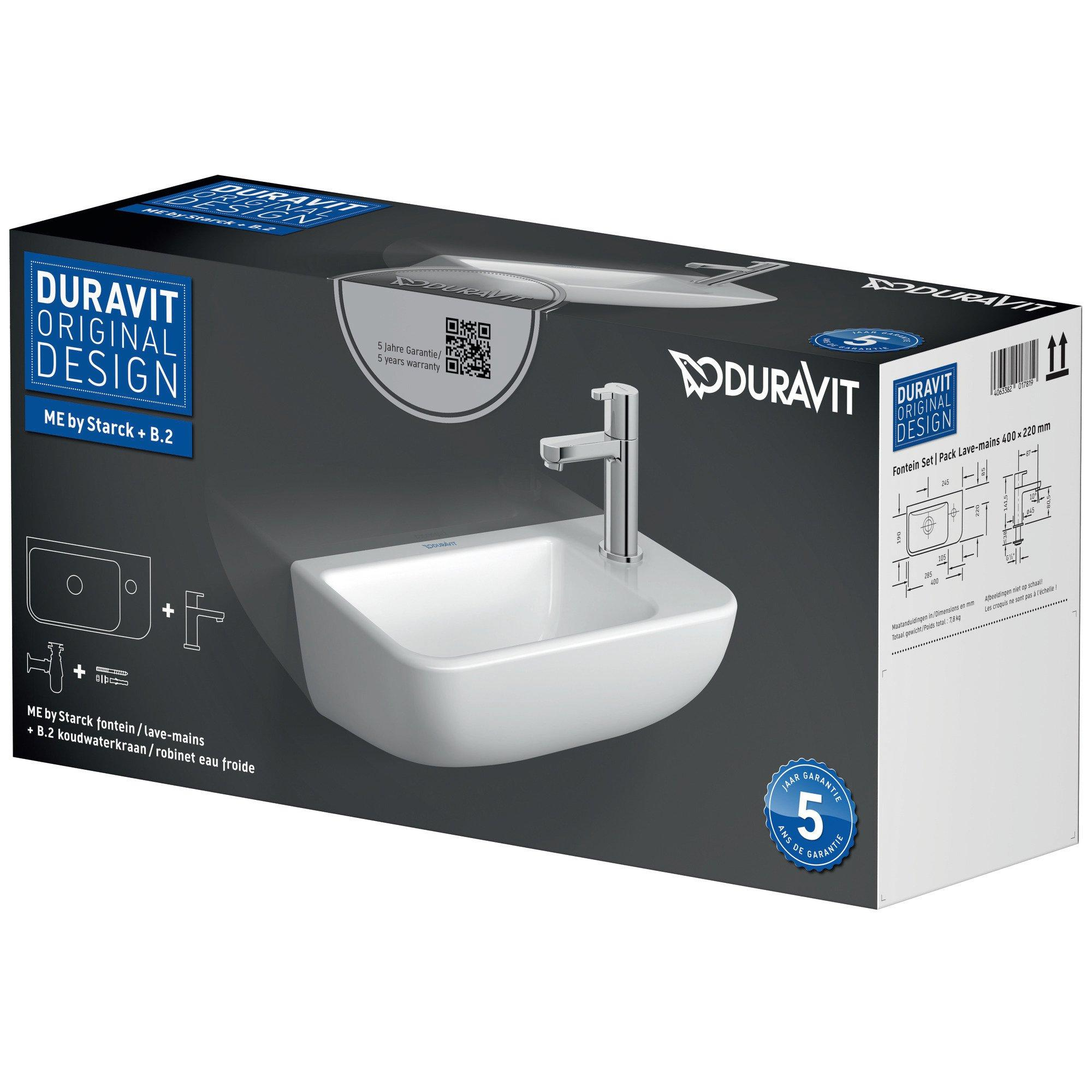 Duravit Me by starck ensemble lave-mains 40x22cm avec robinet d'eau froide et siphon blanc