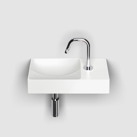 Le trou de robinet à droite est idéal si votre installation de conduites s’y trouve déjà ou si vous souhaitez créer délibérément un aménagement pratique dans lequel le robinet ne gêne pas le passage. Cela réduit le risque de chocs et de projections d’eau et garantit un mouvement logique et ergonomique lors du lavage des mains. Grâce à son format compact, vous pouvez utiliser cette fontaine parfaitement dans des toilettes étroites ou à côté d’une porte. Elle convient pour un montage mural et se combine parfaitement avec un robinet de lavabo élégant en chrome, en noir ou en métal brossé, vous permettant de prolonger facilement le style souhaité dans vos toilettes ou votre salle de bains.