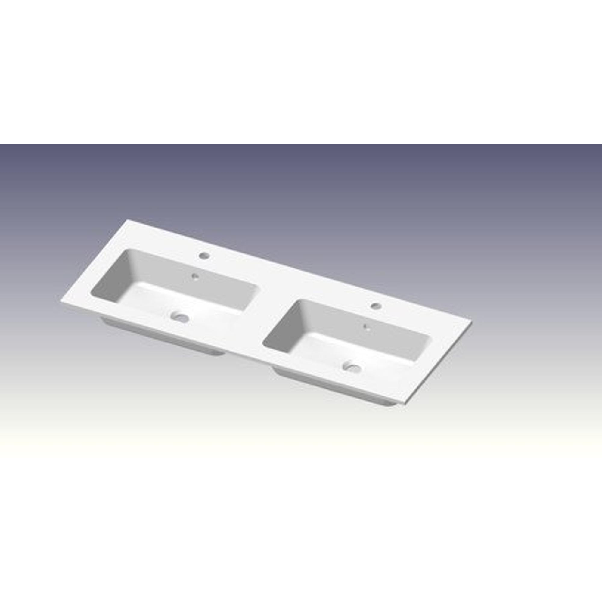 Go by Van Marcke plan vasque 120x46x1.4cm 2 vasques intégrées 2 trous de robinet marbre de synthèse blanc brillant