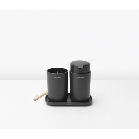 Brabantia ReNew Accessoires de salle de bains - set de 3 - Distributeur de savon - Porte-brosse à dents - Coupelle - gris foncé