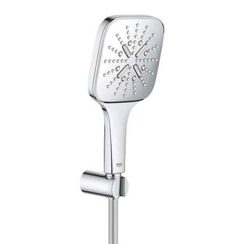 GROHE Rainshower SmartActive 130 Cube Ensemble de douchette à main - 3 types de jet - carré - avec support - flexible lisse - 150 cm - chrome