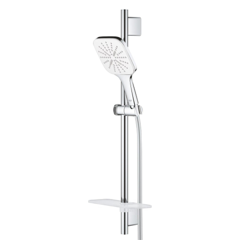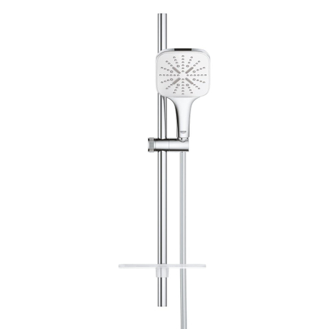 GROHE Rainshower SmartActive 130 Cube Ensemble barre de douche - 60cm - douchette à main carrée - 3 types de jets - flexible de douche lisse - avec porte-savon - chrome/moon white