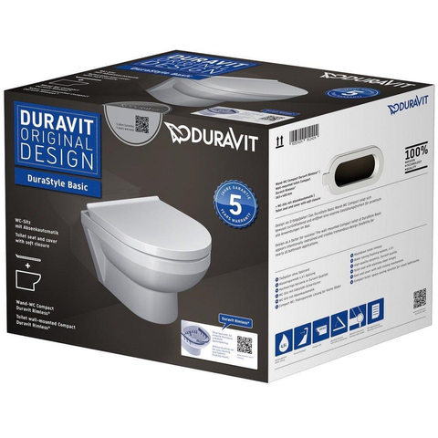 De Duravit DuraStyle Basic pack WC suspendu combineert modern design met praktische functionaliteit. Deze set bestaat uit een hangend toilet en een softclose closetzitting, beide in een tijdloze witte kleur. Het randloze Rimless-ontwerp zorgt voor optimale hygiëne en eenvoudige reiniging, terwijl de waterbesparende spoeling met een volume van slechts 4,5 liter bijdraagt aan duurzaamheid.Het toilet heeft een compacte afmeting van 36,5 x 48 cm en een diepe doorspoeling die nare geuren minimaliseert. De achterafvoer en UWL klasse 1-classificatie maken het geschikt voor uiteenlopende installatie-eisen. Het hoogwaardige keramiek garandeert duurzaamheid en een glad oppervlak dat gemakkelijk schoon te maken is.