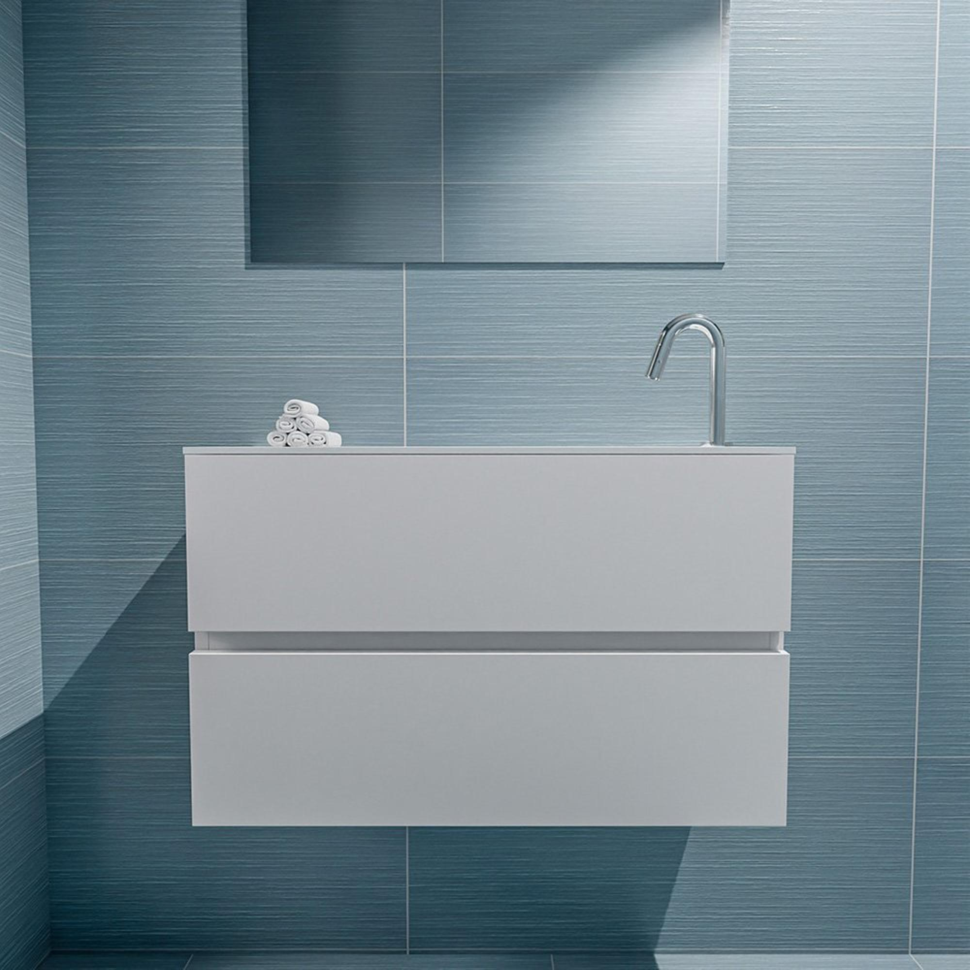 MONDIAZ ADA Meuble WC - 80x30x50cm - 1 trou de robinet - 2 tiroirs - talc mat - vasque à droite - Solid surface - Blanc