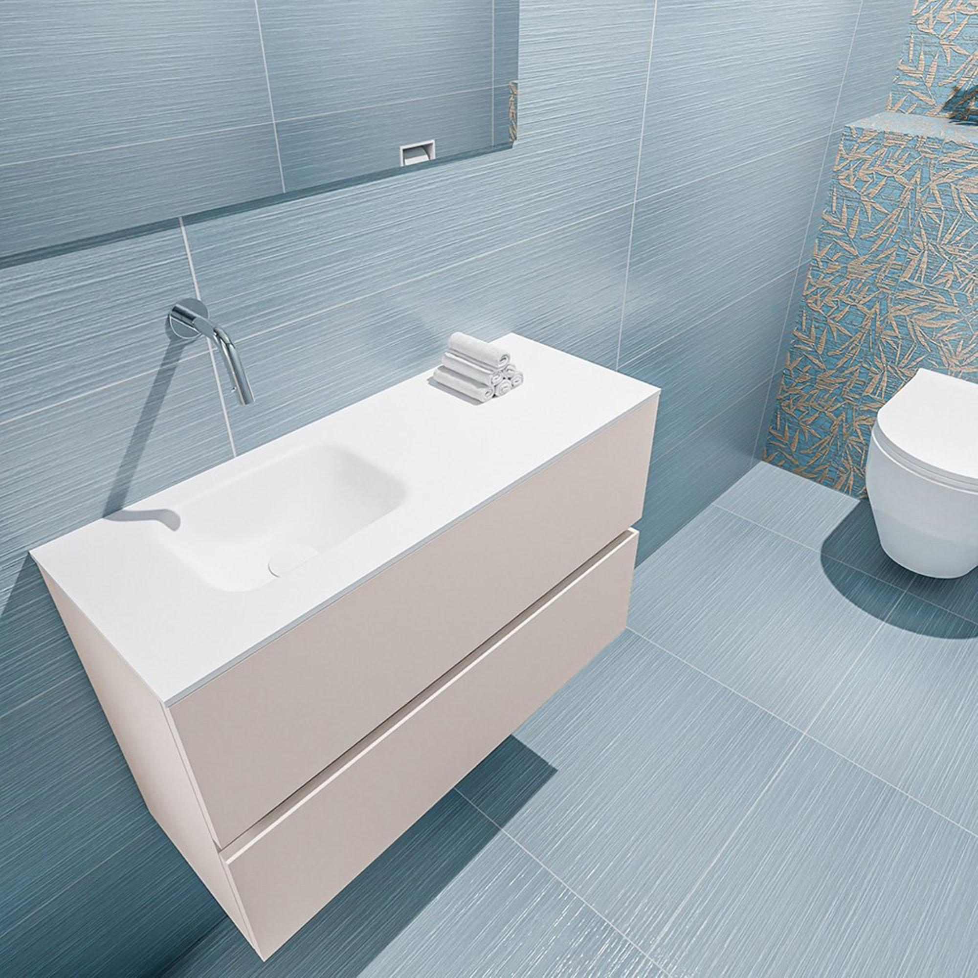 MONDIAZ ADA Meuble WC - 80x30x50cm - 0 trous de robinet - 2 tiroirs - linen mat - lavabo gauche - Solid surface - Blanc